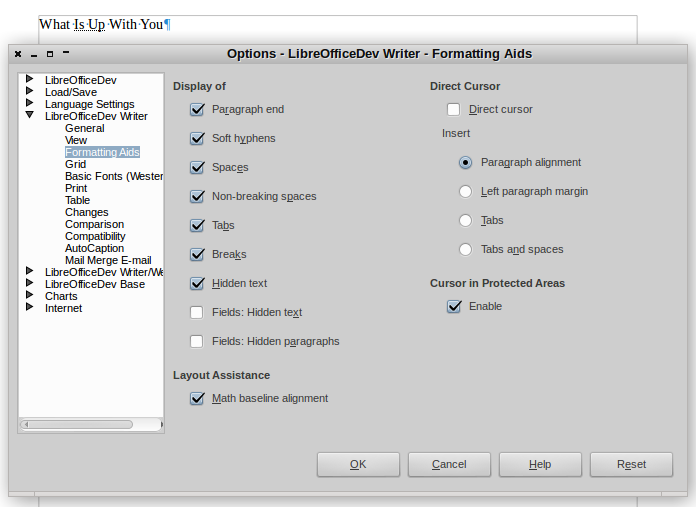 Screenshot of hidden text and options under GNU/Linux + LOv4400 2014-09-05