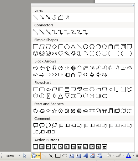 shapes group button in wps writer