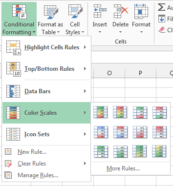 predefined color scales in MS Excel