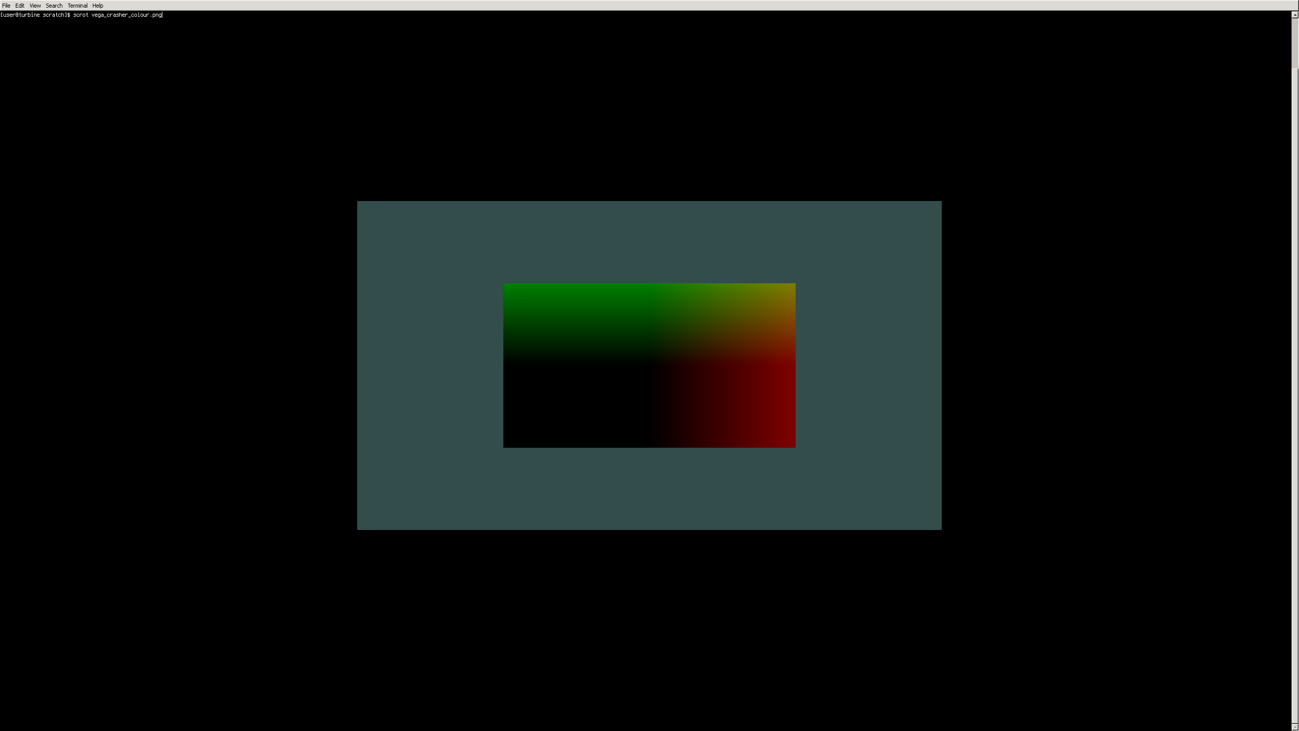 vega_crasher after patch, colour shaded central output, on ryzen 2200G with vega 8 graphics