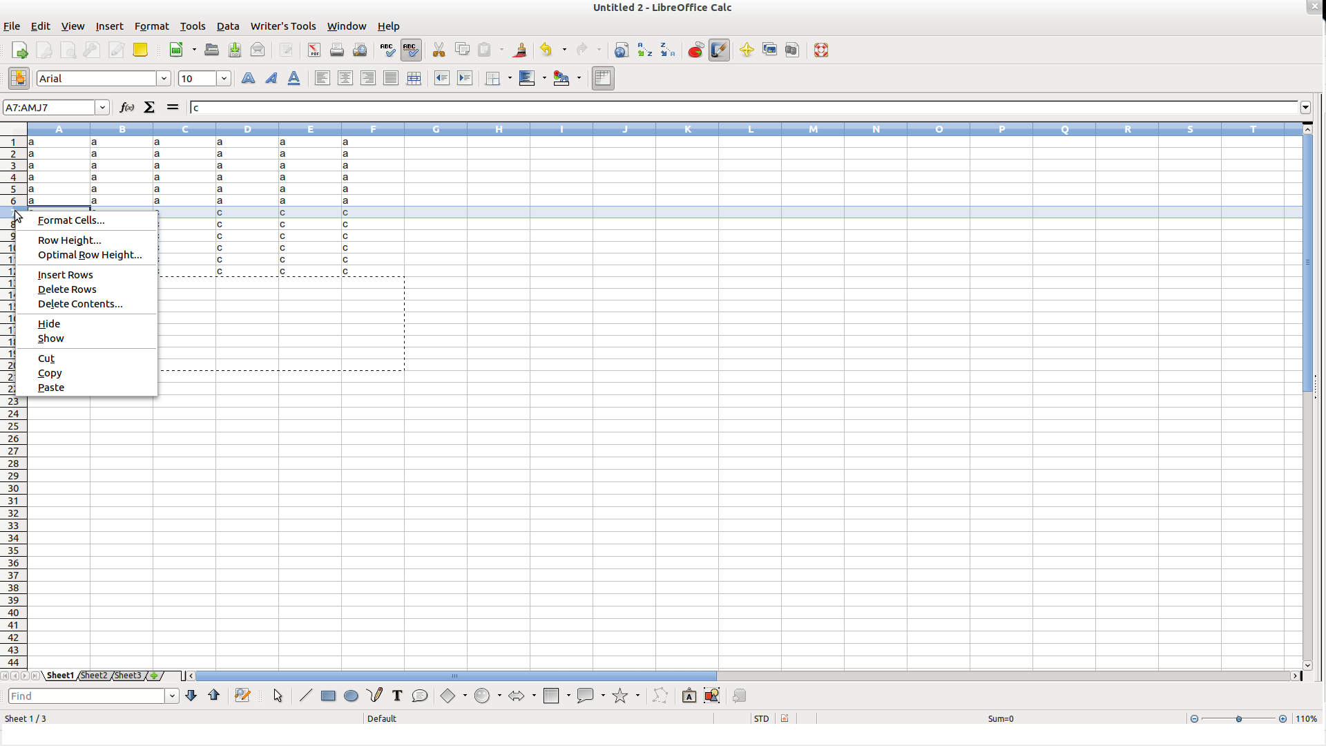 46. right click row heading of first "c" row