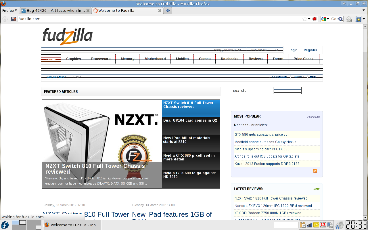 Thanks :) I triggered the partial image loading after the VT switch again. Hmm, with those patches applied, I get corruptions when loading www.fudzilla.com in firefox. Created attachment 58392 [details]