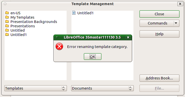 | Summary: | Renaming and deleting of inserted template categories broken, inserted templates land in wrong category (indexing issue in code) | ||