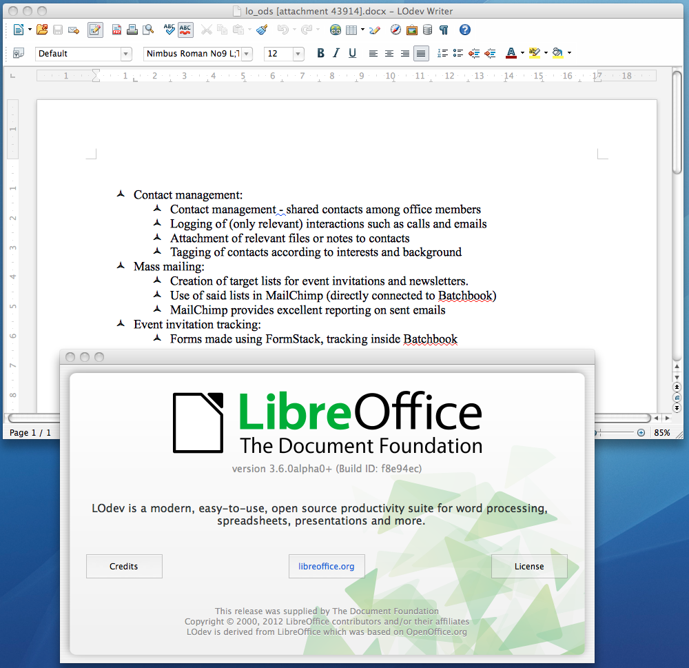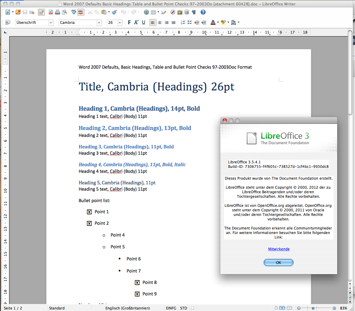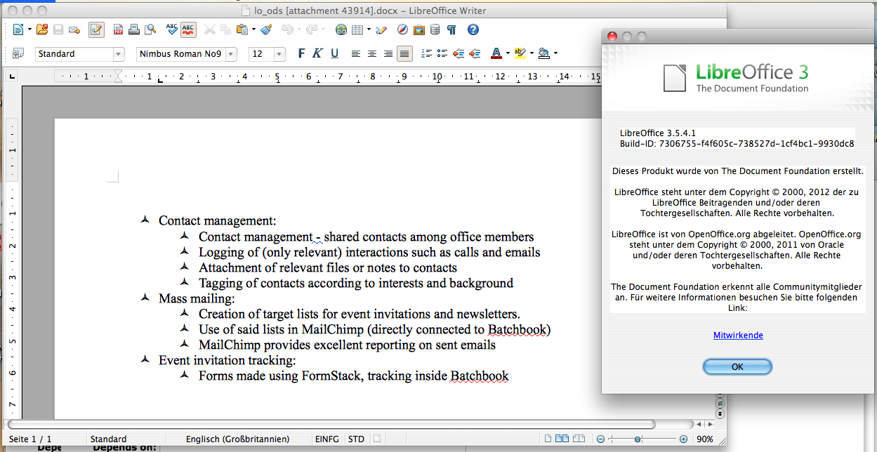 Screenshot of LibreOffice 3.5.4 RC2 doc import
