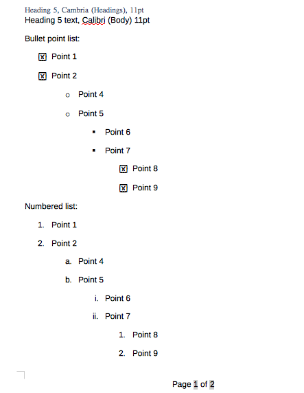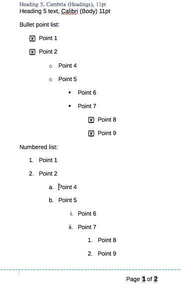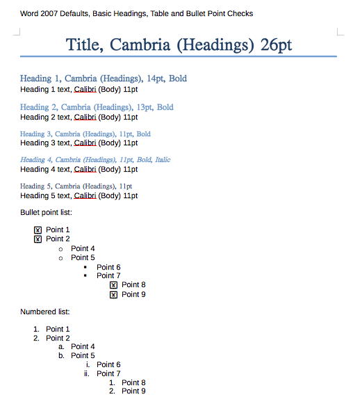 Default and styled bullet lists, DOC format (Word 97/2000/XP/2003)