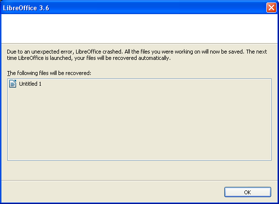 Created attachment 73784 [details] Error dialog (nothing particularly special, but there it is) This bug has repeated for me over and over, and over versions of LibreOffice. Say I save a document, foo.odt, on a 32-bit Windows XP Pro machine, or under either my 32-bit Xubuntu Linux machine or my 64-bit Fedora Linux machine. That document opens fine under those systems. However, if I try to open that document under Windows XP Pro x64, it crashes out immediately with: --- Due to an unexpected error, LibreOffice crashed. All the files you were working on will now be saved. The next time LibreOffice is launched, your files will be recovered automatically. The following files will be recovered: Untitled 1 --- So, even the name of the file (foo.odt in this example) isn't recorded by LibreOffice under Windows XP Pro x64. This is critical, of course, since I use my Windows XP Pro x64 machine at home. NOTE: if I CREATE and SAVE a document in LibreOffice under XP Pro x64, it continues to open fine under that system and any other system. But once that file has been saved on another system, LibreOffice crashes out when trying to open it under XP Pro x64. I realize that Windows XP Pro x64 may not be a supported OS, but it sure would be nice if this were fixed, anyway. :)