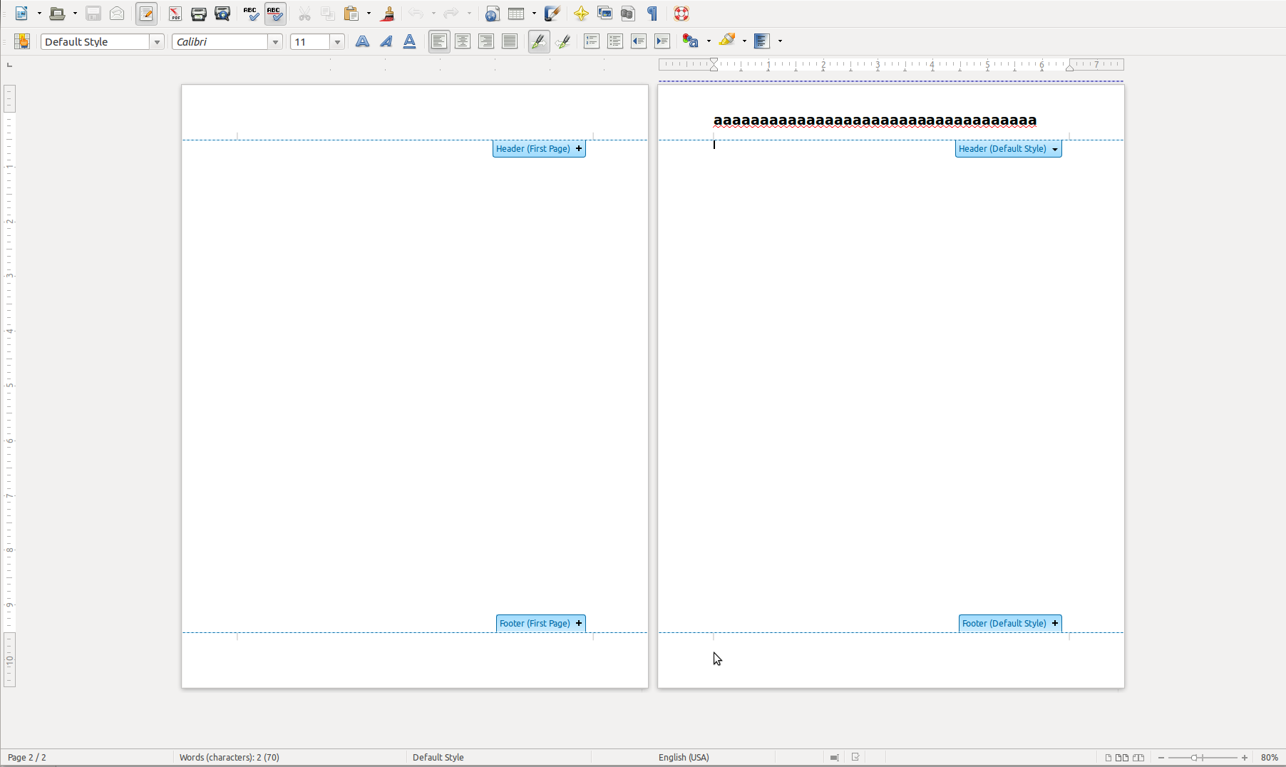 Screenshot showing 'Header Only on 2nd page' imported in LO