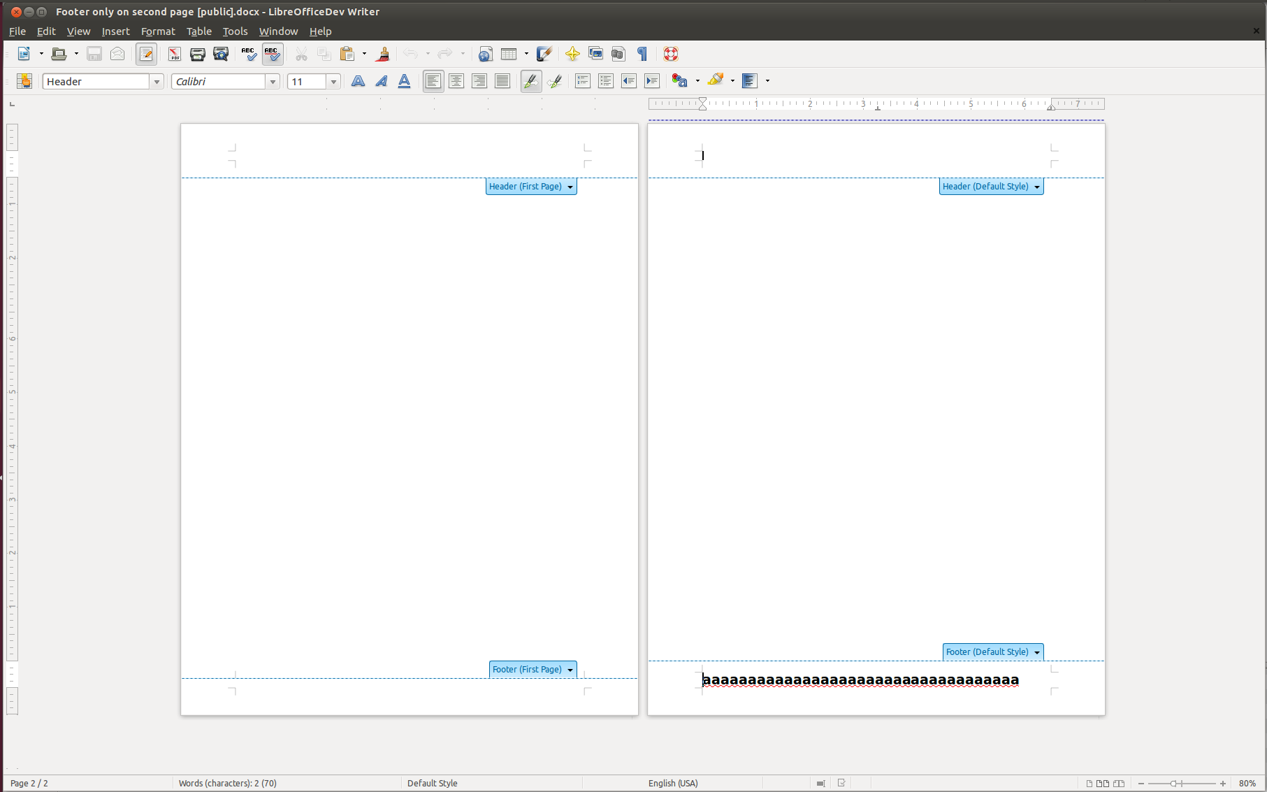 Screenshot showing 'Footer Only on 2nd page' imported in LO