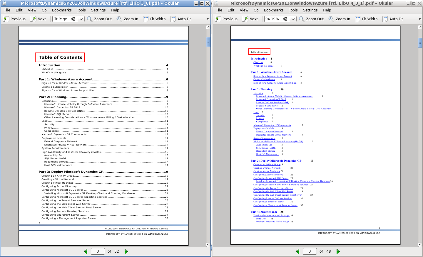 In 4.4, the size of the font seems correct but not the font name, as its showing as Times New Roman (but that could be related to another bug - bug 81944). (In reply to comment #0) > 2) scroll down to page 3 and you'll see the words 'Table of Contents' has > the wrong style when comparing it with the attached screenshot Under GNU/Linux using the indicated versions I see the font settings described: - v3.5.7.2 Build ID: 3215f89-f603614-ab984f2-7348103-1225a5b "Table of Contents " (including trailing space) is set in Verdana 16pt bold. - v4.1.6.2 Build ID: 40ff705089295be5be0aae9b15123f687c05b0a "Table of Contents " (including trailing space) is set in Times New Roman 12pt. - v4.2.5.2 Build ID: 61cb170a04bb1f12e77c884eab9192be736ec5f5 "Table of Contents " (including trailing space) is set in Liberation Serif 12pt. - v4.4.0.0.alpha0+ Build ID: e379401618268ed7f7f5885a36b90e1f4f6cd4af TinderBox: Linux-rpm_deb-x86_64@46-TDF, Branch:master, Time: 2014-08-18_05:51:03 "Table of Contents " (including trailing space) is set in Verdana 16pt (but not bold). Confirmed. Status set to NEW. Closing this as it is fixed now as the text isnt supposed to be bold like 3.6. |