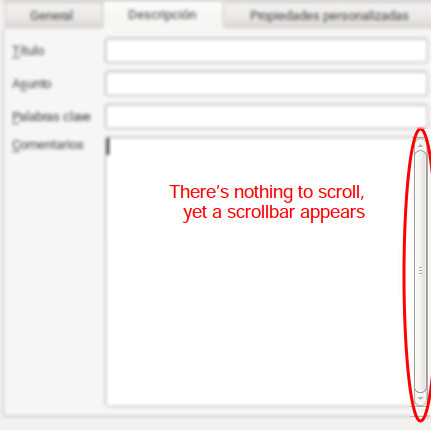 Created attachment 109142 [details] Screenshot of useless scrollbar Some input widgets (boxes and the like) have scrollbars even when not needed. See the attached screenshot.