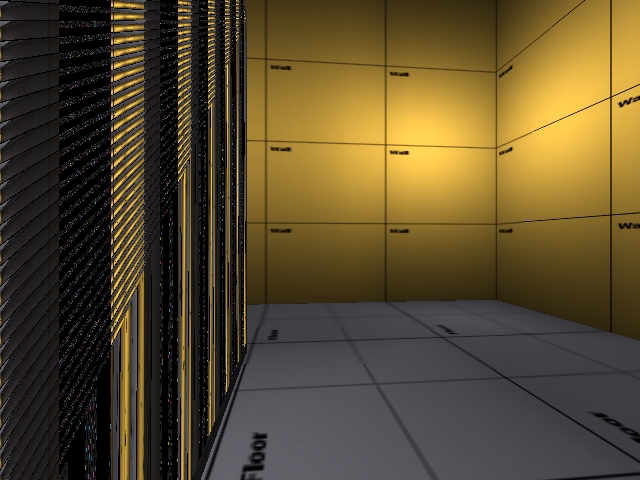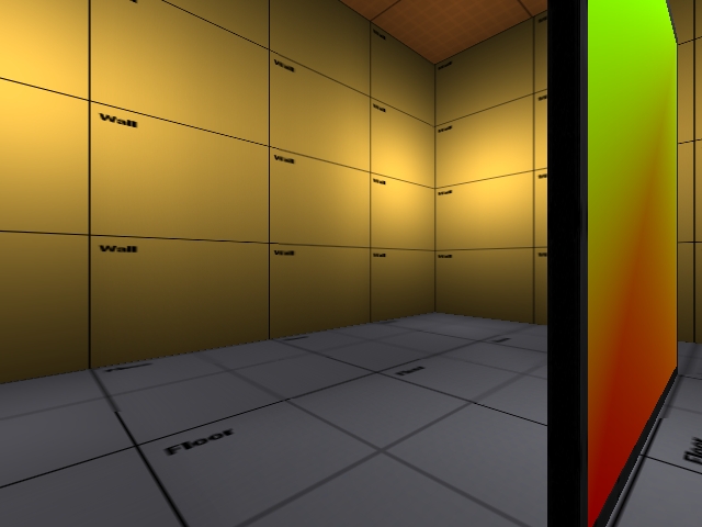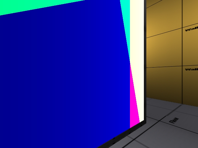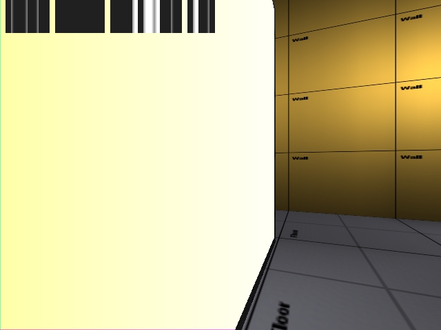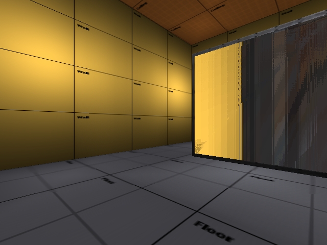 Created attachment 8997 [details] R300 rendering the vertical mirror with INCORRECT XYZ masking. This is R300 rendering the vertical mirror with incorrect XYZ masking on the final result.color MOV, as in this program. Notice the result.color MOV. !!ARBfp1.0 TEMP tmp; MOV tmp.xy, fragment.position; MUL tmp.xy, tmp, program.local[0]; MUL tmp.xy, tmp, program.local[1]; MOV result.color.xyz, tmp; END I'm not exactly sure what's going on, but the blob was defiantly using the XY mask when I made it's screenshot. So it must be doing something differently. I'll wait for your reply, Rune, as I'm not really sure what's going on.