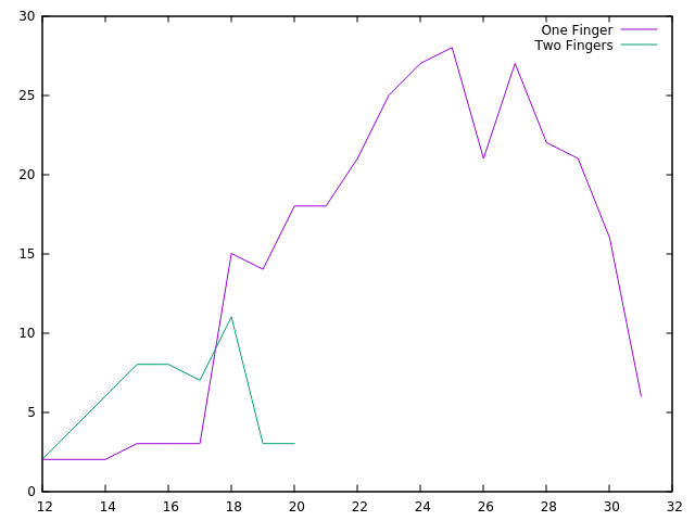 Created attachment 131368 [details] Plot for one-finger and two-finger stats Stats for 20 upward swipe motions, using one finger and two fingers