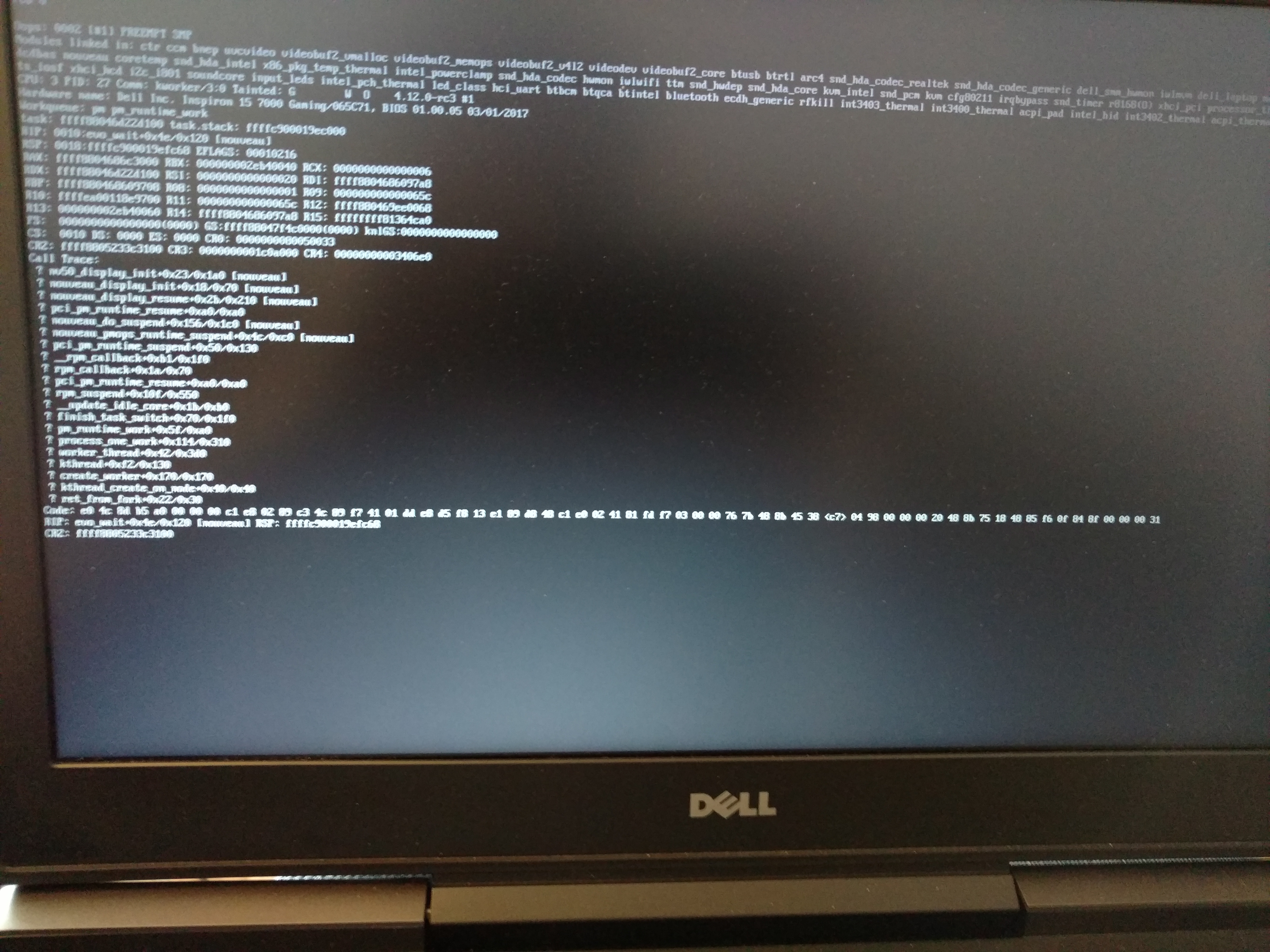 Any news on this? I still need to run with noaccel with kernel 4.19.25, otherwise system ends up getting hung after showing this errors: feb 23 17:21:08 dell-2017 kernel: ------------[ cut here ]------------ feb 23 17:21:08 dell-2017 kernel: nouveau 0000:01:00.0: timeout feb 23 17:21:08 dell-2017 kernel: WARNING: CPU: 4 PID: 64 at drivers/gpu/drm/nouveau/nvkm/subdev/mmu/vmmgf100.c:207 gf100_vmm_flush_+0x149/0x190 [nouveau] feb 23 17:21:08 dell-2017 kernel: Modules linked in: cmac ctr ccm bnep uvcvideo videobuf2_vmalloc btusb videobuf2_memops videobuf2_v4l2 btrtl videodev btbcm btintel videobuf2_common bluetooth ecdh_generic hid_m> feb 23 17:21:08 dell-2017 kernel: acpi_pad int340x_thermal_zone int3400_thermal acpi_thermal_rel vboxpci(O) vboxnetadp(O) vboxnetflt(O) vboxdrv(O) feb 23 17:21:08 dell-2017 kernel: CPU: 4 PID: 64 Comm: kworker/4:1 Tainted: G W O 4.19.25-gentoo #1 feb 23 17:21:08 dell-2017 kernel: Hardware name: Dell Inc. Inspiron 15 7000 Gaming/065C71, BIOS 1.6.0 03/27/2018 feb 23 17:21:08 dell-2017 kernel: Workqueue: pm pm_runtime_work feb 23 17:21:08 dell-2017 kernel: RIP: 0010:gf100_vmm_flush_+0x149/0x190 [nouveau] feb 23 17:21:08 dell-2017 kernel: Code: 5f e9 3b ae 56 e1 48 8b 7d 10 48 8b 5f 50 48 85 db 74 46 e8 09 7b 32 e1 48 89 da 48 89 c6 48 c7 c7 a4 a8 3a a0 e8 07 63 df e0 <0f> 0b eb c2 48 8b 7d 10 48 8b 5f 50 48 85 > feb 23 17:21:08 dell-2017 kernel: RSP: 0018:ffffc90001b53718 EFLAGS: 00010296 feb 23 17:21:08 dell-2017 kernel: RAX: 000000000000001d RBX: ffff88846cdae2d0 RCX: 0000000000000006 feb 23 17:21:08 dell-2017 kernel: RDX: 0000000000000007 RSI: 0000000000000086 RDI: ffff88846f7153f0 feb 23 17:21:08 dell-2017 kernel: RBP: ffff88846bc37800 R08: 0000000000000001 R09: 00000000000004b3 feb 23 17:21:08 dell-2017 kernel: R10: 0000000000000001 R11: 0000000000000000 R12: ffff88846277e660 feb 23 17:21:08 dell-2017 kernel: R13: 0000000c6f79dd60 R14: ffff88846aa34020 R15: ffff88846aad3600 feb 23 17:21:08 dell-2017 kernel: FS: 0000000000000000(0000) GS:ffff88846f700000(0000) knlGS:0000000000000000 feb 23 17:21:08 dell-2017 kernel: CS: 0010 DS: 0000 ES: 0000 CR0: 0000000080050033 feb 23 17:21:08 dell-2017 kernel: CR2: 00007fab22c8d4a0 CR3: 000000000200a002 CR4: 00000000003606e0 feb 23 17:21:08 dell-2017 kernel: Call Trace: feb 23 17:21:08 dell-2017 kernel: nvkm_vmm_iter.constprop.15+0x2cf/0x7e0 [nouveau] feb 23 17:21:08 dell-2017 kernel: ? nvkm_vmm_map+0xb8/0x3e0 [nouveau] feb 23 17:21:08 dell-2017 kernel: nvkm_vmm_map+0x1a5/0x3e0 [nouveau] feb 23 17:21:08 dell-2017 kernel: ? gp100_vmm_pgt_sgl+0x180/0x180 [nouveau] feb 23 17:21:08 dell-2017 kernel: nvkm_vram_map+0x43/0x50 [nouveau] feb 23 17:21:08 dell-2017 kernel: nvkm_uvmm_mthd+0x71e/0x850 [nouveau] feb 23 17:21:08 dell-2017 kernel: ? lock_timer_base+0x62/0x80 feb 23 17:21:08 dell-2017 kernel: nvkm_ioctl+0x105/0x240 [nouveau] feb 23 17:21:08 dell-2017 kernel: nvif_object_mthd+0xd3/0xf0 [nouveau] feb 23 17:21:08 dell-2017 kernel: ? dma_fence_wait_timeout+0x30/0x30 feb 23 17:21:08 dell-2017 kernel: nvif_vmm_map+0xef/0x110 [nouveau] feb 23 17:21:08 dell-2017 kernel: nouveau_mem_map+0x73/0xd0 [nouveau] feb 23 17:21:08 dell-2017 kernel: nouveau_vma_map+0x2f/0x40 [nouveau] feb 23 17:21:08 dell-2017 kernel: nouveau_bo_move_ntfy+0x6b/0xd0 [nouveau] feb 23 17:21:08 dell-2017 kernel: ttm_bo_handle_move_mem+0x3b1/0x590 [ttm] feb 23 17:21:08 dell-2017 kernel: ? drm_vma_offset_add+0x3c/0x60 feb 23 17:21:08 dell-2017 kernel: ttm_bo_evict+0x145/0x320 [ttm] feb 23 17:21:08 dell-2017 kernel: ? gf119_disp_chan_uevent_fini+0x3d/0x60 [nouveau] feb 23 17:21:08 dell-2017 kernel: ? nouveau_bo_invalidate_caches+0x10/0x10 [nouveau] feb 23 17:21:08 dell-2017 kernel: ? drm_vma_offset_add+0x3c/0x60 feb 23 17:21:08 dell-2017 kernel: ? drm_mode_std+0x479/0x4a0 feb 23 17:21:08 dell-2017 kernel: ttm_mem_evict_first+0x18b/0x210 [ttm] feb 23 17:21:08 dell-2017 kernel: ttm_bo_force_list_clean+0x8a/0x150 [ttm] feb 23 17:21:08 dell-2017 kernel: ? pci_pm_runtime_resume+0xc0/0xc0 feb 23 17:21:08 dell-2017 kernel: nouveau_do_suspend+0x76/0x2a0 [nouveau] feb 23 17:21:08 dell-2017 kernel: nouveau_pmops_runtime_suspend+0x3d/0xa0 [nouveau] feb 23 17:21:08 dell-2017 kernel: pci_pm_runtime_suspend+0x56/0x150 feb 23 17:21:08 dell-2017 kernel: ? next_online_pgdat+0x1d/0x40 feb 23 17:21:08 dell-2017 kernel: __rpm_callback+0xb3/0x1b0 feb 23 17:21:08 dell-2017 kernel: ? pci_pm_runtime_resume+0xc0/0xc0 feb 23 17:21:08 dell-2017 kernel: rpm_callback+0x1a/0x70 feb 23 17:21:08 dell-2017 kernel: ? pci_pm_runtime_resume+0xc0/0xc0 feb 23 17:21:08 dell-2017 kernel: rpm_suspend+0x110/0x520 feb 23 17:21:08 dell-2017 kernel: ? __update_idle_core+0x1b/0xb0 feb 23 17:21:08 dell-2017 kernel: pm_runtime_work+0x5f/0xa0 feb 23 17:21:08 dell-2017 kernel: process_one_work+0x1c3/0x340 feb 23 17:21:08 dell-2017 kernel: worker_thread+0x28/0x3c0 feb 23 17:21:08 dell-2017 kernel: ? set_worker_desc+0x90/0x90 feb 23 17:21:08 dell-2017 kernel: kthread+0x109/0x120 feb 23 17:21:08 dell-2017 kernel: ? kthread_create_worker_on_cpu+0x40/0x40 feb 23 17:21:08 dell-2017 kernel: ret_from_fork+0x1f/0x40 feb 23 17:21:08 dell-2017 kernel: ---[ end trace 3e9fb3a70dfda7a7 ]--- feb 23 17:21:08 dell-2017 kernel: [TTM] Buffer eviction failed Thanks