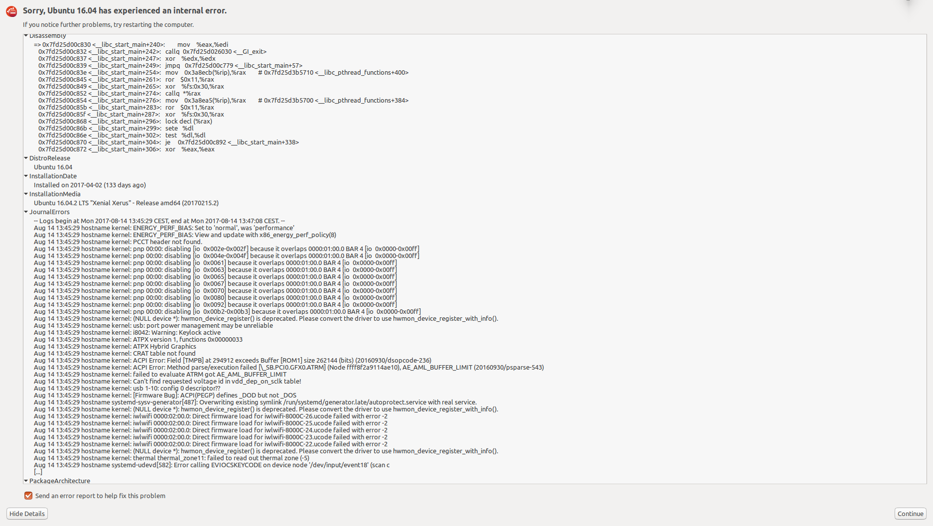 Created attachment 133486 [details] 20170814 error reproduce Disassembly + Journalerrors