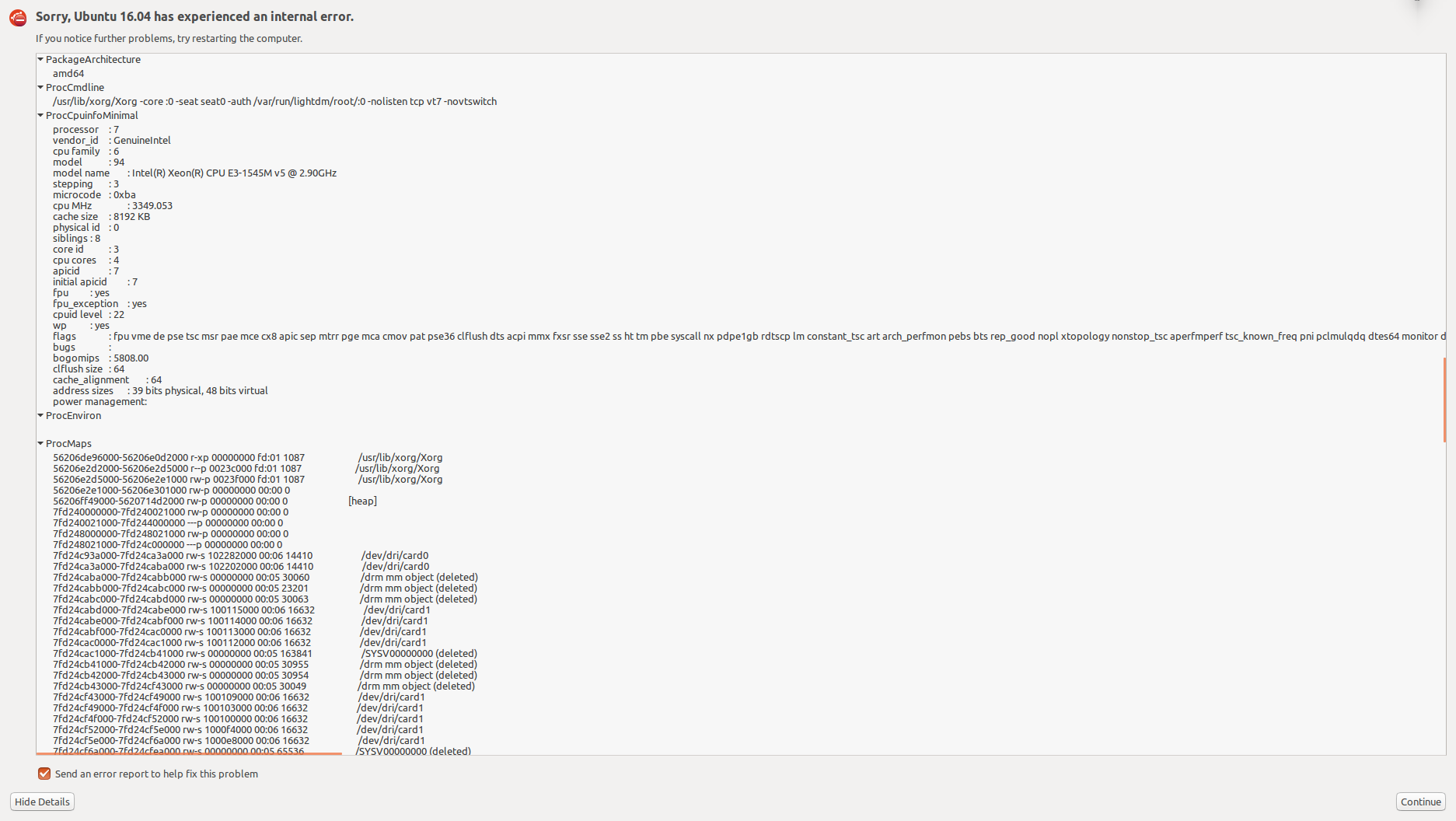 Created attachment 133487 [details] 20170814 error reproduce Proccpuinfo