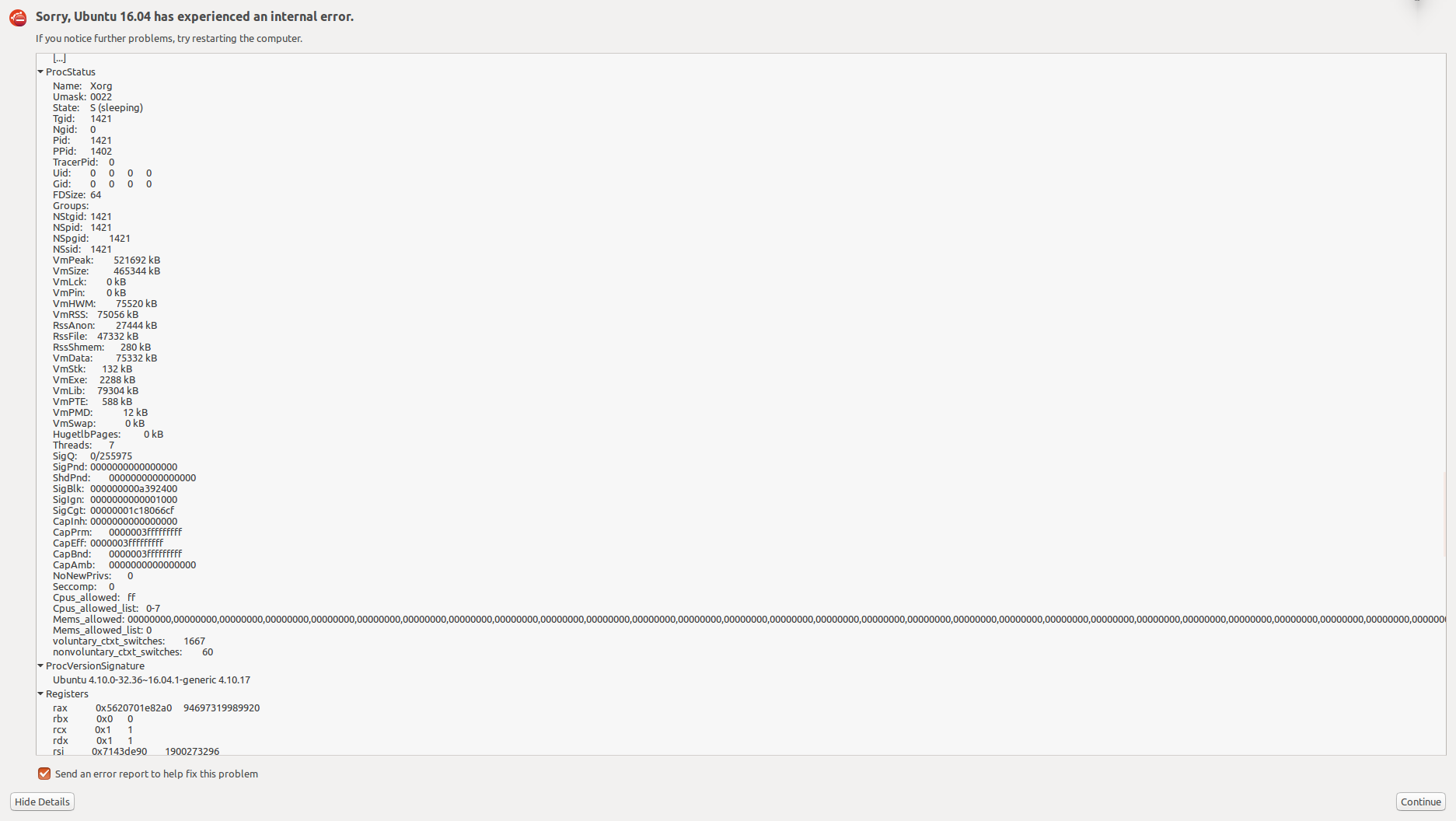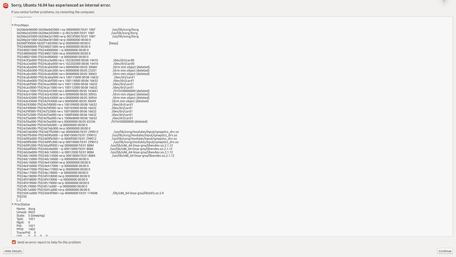 Created attachment 133488 [details] 20170814 error reproduce Procmaps