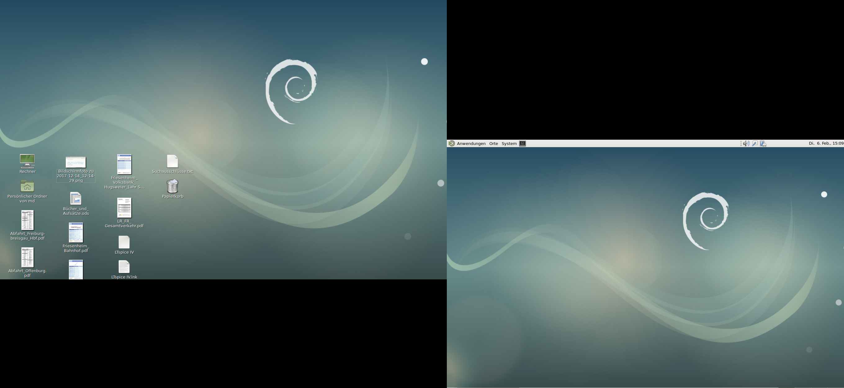 Created attachment 137186 [details] shown is Icon Placement, limiting to the upper edge of the rigth "main" screen After successfully displaying double screen arrangement with xrandr. here shown are Icon arrangement of single screen display and same icons on double screen display. Some Icons are hidden from visibility and access. I cannot click on Icons hidden from the screen surface. Icons are aligned to the wrong limits. Icon Places shall be confined to the area, which is accessible by the mouse pointer.