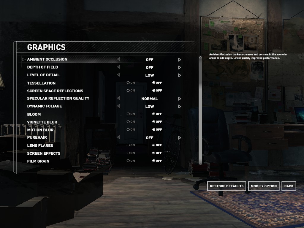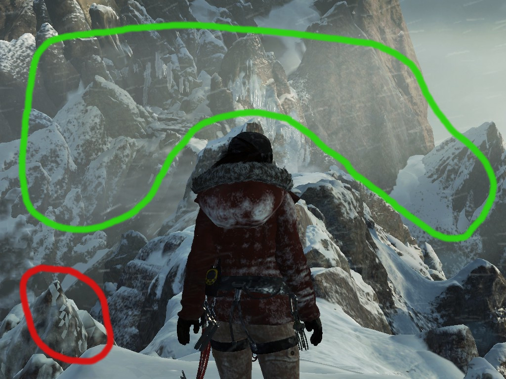 I took more than 20 screenshots, but on all of them the corruption is not visible. Only at the end of the first location (red circle). In "real world" all the rocks in red AND green circles are totally corrupted. When I change the preset to low or middle it gets even more worse. Than I have black boxes and flashing dots in addition.