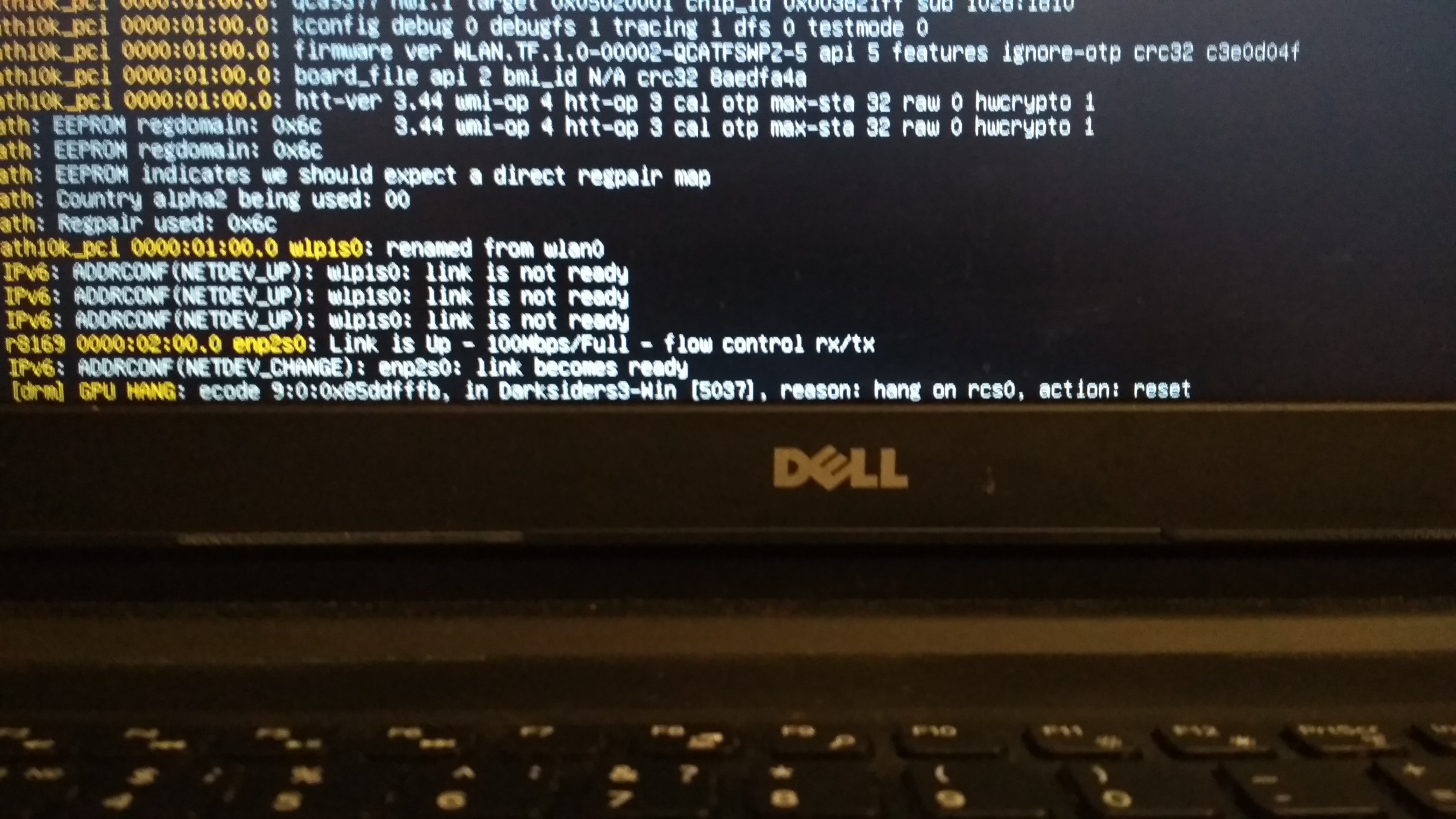 Created attachment 142779 [details] the output with drm.debug is the same See: https://github.com/doitsujin/dxvk/issues/794 Glxinfo: https://pastebin.com/PFTDYDeE monsterovich@dell ~ $ uname -a Linux dell 4.19.8-xanmod5 #1.181209 SMP PREEMPT Sun Dec 9 10:18:38 -02 2018 x86_64 x86_64 x86_64 GNU/Linux dmesg -w with drm.debug=0xe in kernel command line: https://pastebin.com/TVTSAmMf