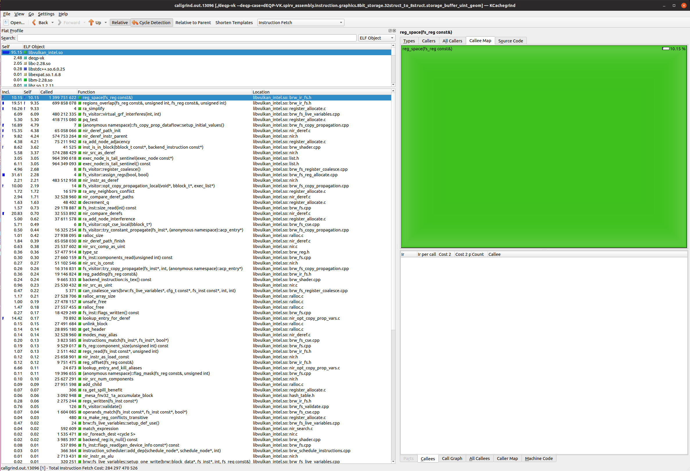 Created attachment 144117 [details] callgraph I'm attaching a callgraph of running the test for couple of hours. It does not tell much but I guess something about the changes done make the register allocator nuts.