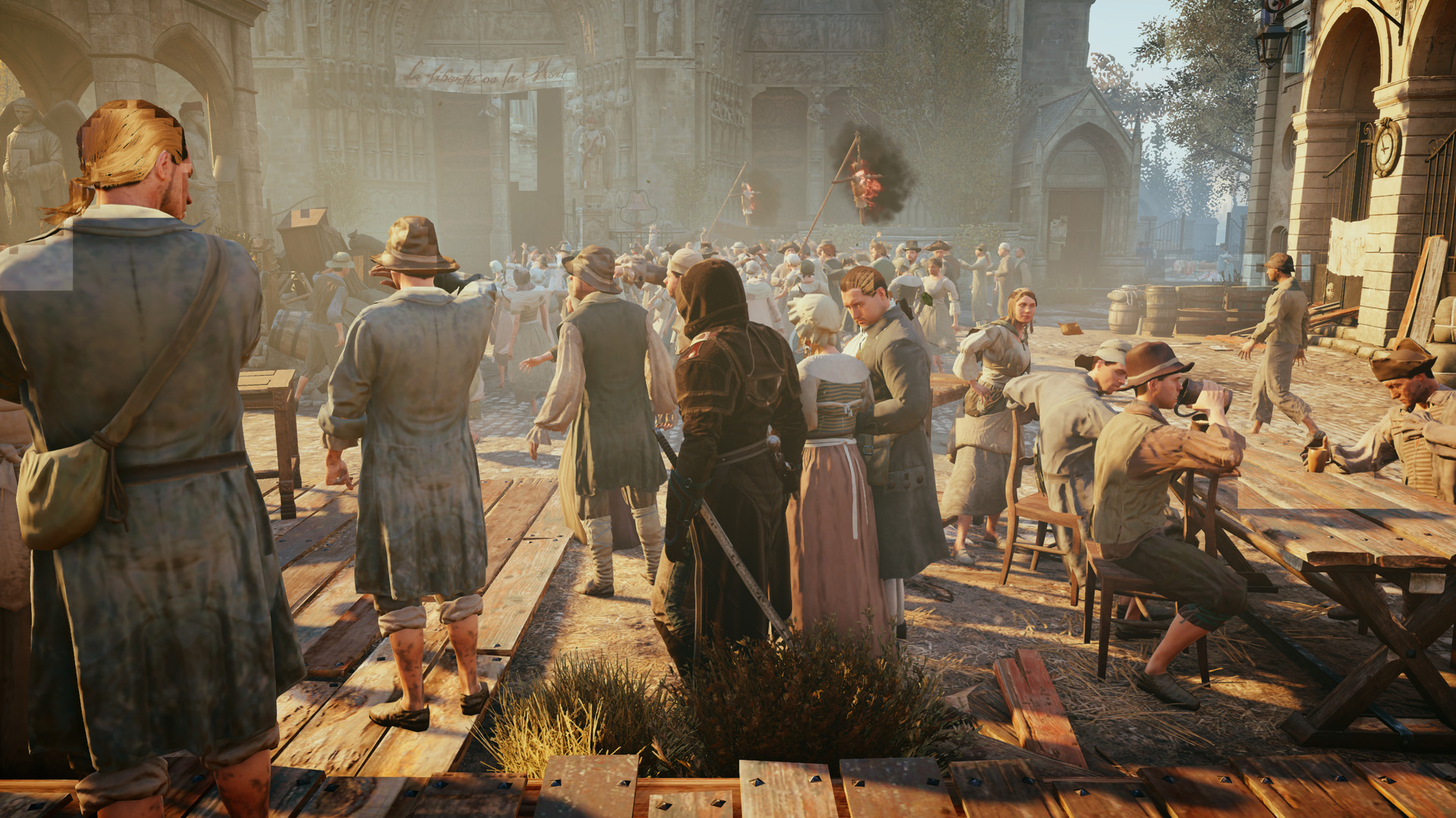 When Mesa is compiled with a recent version of LLVM 9 (anything newer than around early May), Assassin's Creed: Unity exhibits graphical glitches when using RADV and running the game with Wine + DXVK. The problem does not exist when compiling Mesa against LLVM 8, nor does it exist when using AMDVLK. Additionally, older Mesa versions such as 19.0.x and 19.1.x exhibit the bug when compiled against LLVM 9. The problem did not exist with older revisions of LLVM 9. I can run a regression test if needed, but it could take a while given the size of LLVM. I've also made a capture with RenderDoc and a Vega 56 GPU, which I've attached (for the record, the bug also exists with the RX550 card). Thanks