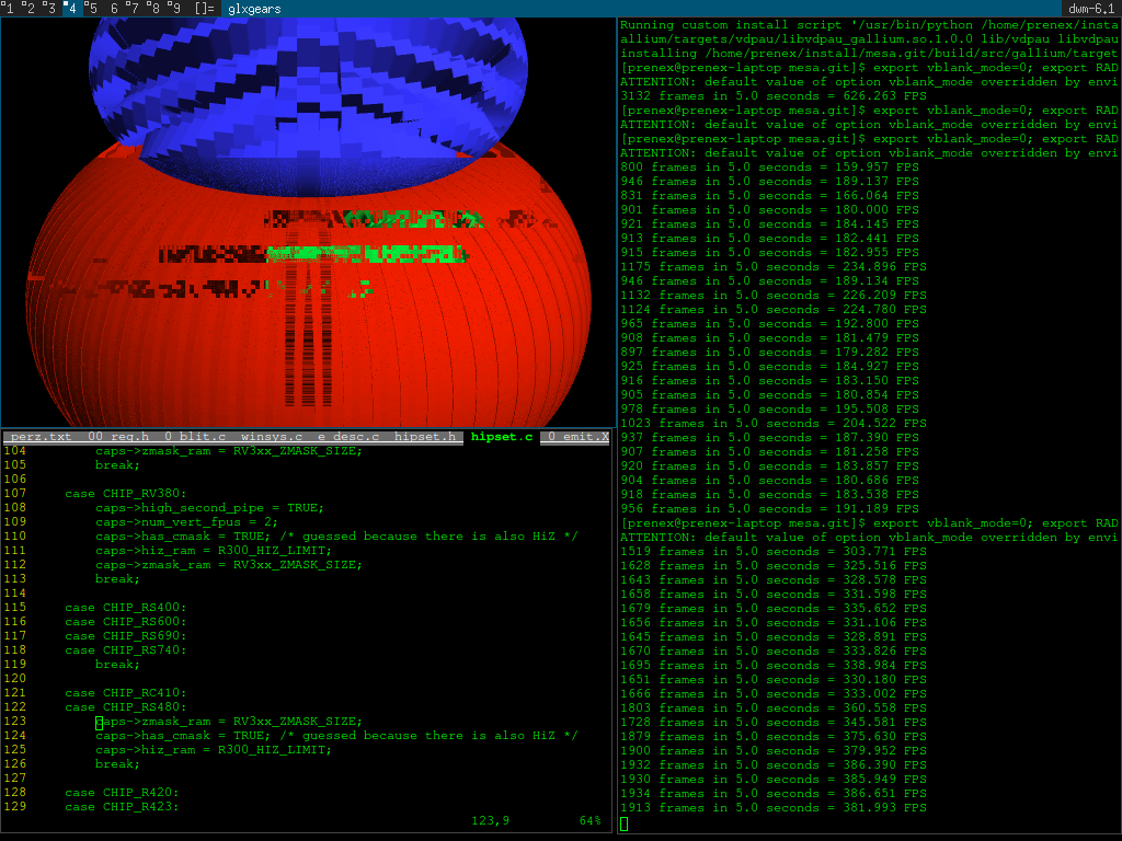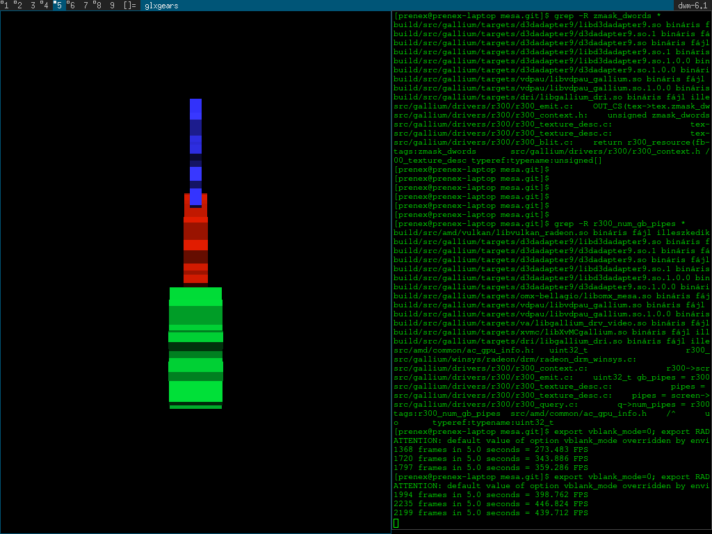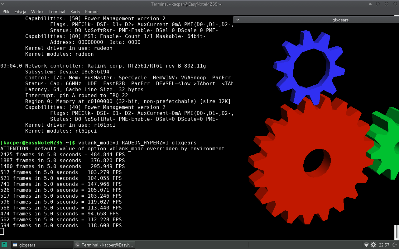 Created attachment 144524 [details] bigger glxgears window >Is HyperZ just good without any changes to stock mesa? yes, mesa is from manjaro repo, and I think that it's the same build as in arch repo. >Your card seems to be also reported as RC410 like mine, but you have much-much more FPS for some reason. It's because window size of glxgears ;) We could test that if you want. But we need to agree on window size ;) >Is this also a laptop? Yes. I also tried to resize window to try to get some artifacts. Apart from some flickering during resizing, image was good. Flickering was also present without HyperZ.