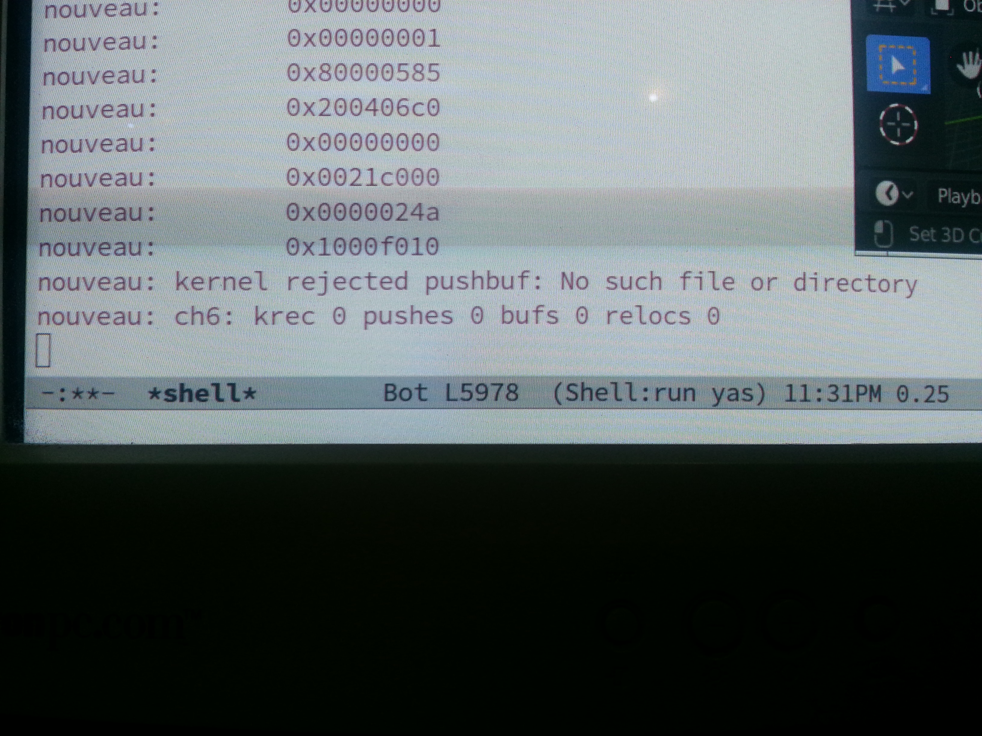 (In reply to joinlaw from comment #6) > Created attachment 144811 [details] > This is an apitrace file for blender 2.8 rc1 > > This bug appear when using evee realtime rendering engine which is OpenGL > 3.0+ > application and seems that is require a lot of GPU power or maybe some > OpenGL 3.0+ > functionality in broken in Nouveau. > > any way here is the trace file. replaying this trace crashes glretrace. Can you verify that replaying the trace works for you? And what version were you using to record it?