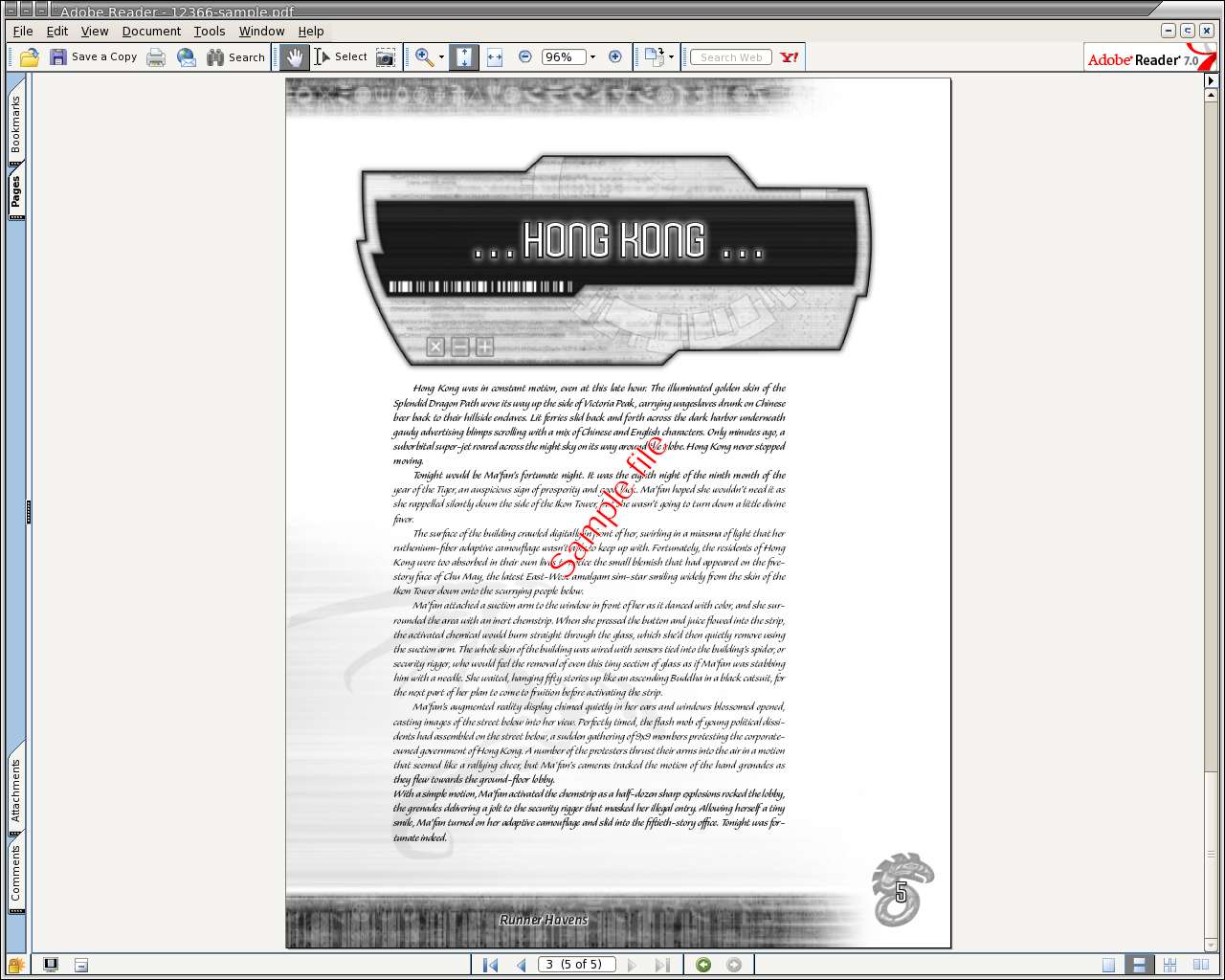 Since the sample file is 1.4MB in size, I'm posting a link to it. It's a free sample file from an electronic bookstore, so the link should be reliable. I can also attach the file if needed. http://watermark.drivethrustuff.com/pdf_previews/12366-sample.pdf