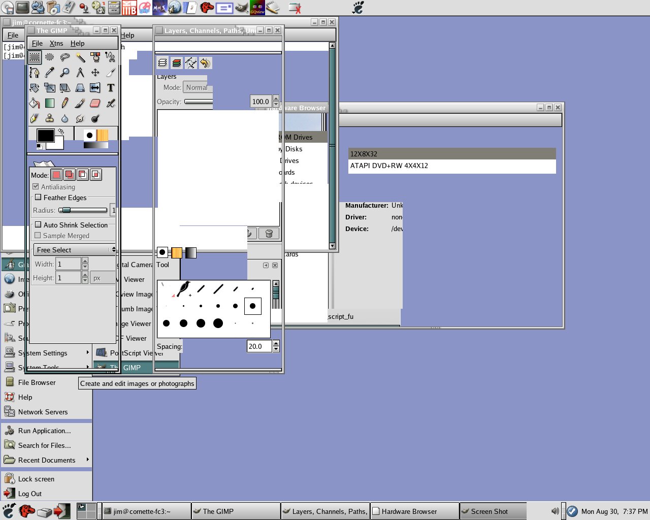 Created attachment 768 [details] X started, worked for a few minutes, locked when sending email I was sending an email confirming X now worked and suddenly the freeze, slowdown started. Originally, I could not even seem to switch to terminal. After rebooting the computer to change kernel and see if restarting the computer would simulate the error or the error would be gon. I found that the error was very much present. I was able to successfully switch to terminals, but could not see X, startx running, gnome processes were running, but no X. This problem sees similar to the problem that I had on a computer with an 845 card, X just disappeared. With this case, it seems that gnome process are still using whatever still appears on screen 7. With the binary driver from the earlier install of a working version of X, submitted in bug 1086.