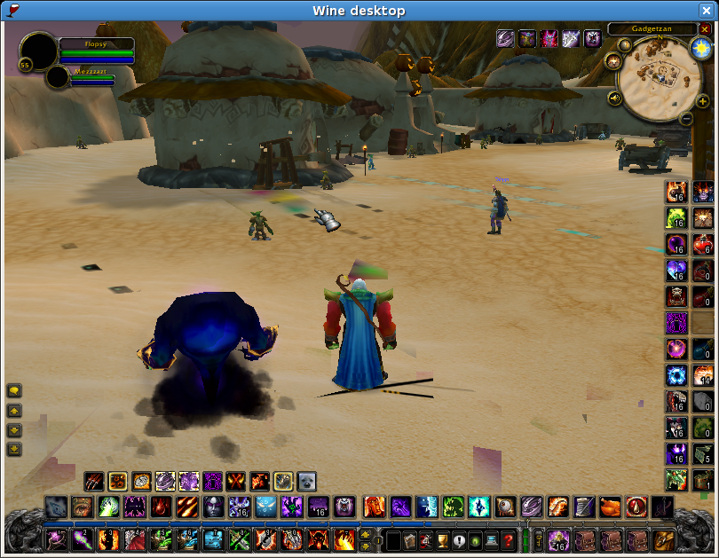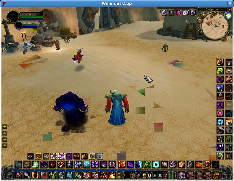 The display in World of Warcraft has started to break up the longer I play. It starts off with pixel-level noise (like static on a TV picture), and then this static becomes more and more severe until eventually the card locks up. I have tried to take a screenshot which has clear pixel-sized holes over the building, and flashing coloured pieces whizzing past at random. Restarting the X-server seems to put things back to normal, for a while at least. Once this starts happening, it also affects any other OpenGL program such as celestia. I am using Mesa git where the last commit was: bf805d3bf5bf191aa669b6155316a78917cf9b0e because anything later doesn't appear to be compatible with Xorg server 1.3.