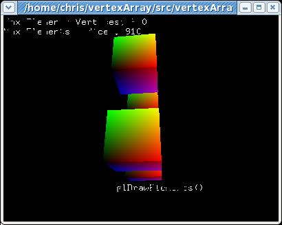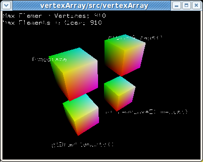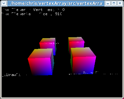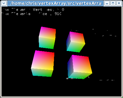 Other interesting points: - the same thing happens with LIBGL_ALWAYS_INDIRECT=1 - the pixels forming the text mysteriously turn themselves on and off as I move the application's window around the screen, and not just as I rotate the cubes. - I am using Fedora 7 with Mesa git.