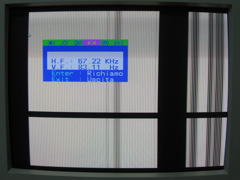 Hello. This morning I updated to xf86-video-ati 6.7.196 after having used xf86-video-ati 6.7.195 for a month without any problem. In the few hours since the upgrade I had a strange problem: for two times while I was normally using xorg the screen blinked, the status led of my monitor went from green (normal) to yellow (changing mode) and then to green again while the normal output was replaced by a grey pattern (picture taken with digital camera attached in the next comments). The mouse keeps working, the grey pattern reacted to changes (ie. activating compiz effects with the keyboard shortcuts), switching to console and then back to X fixed the problem in every occasion. The second time I actually checked the refresh rate with the OSD menu: it changed from the normal "H 68.76 KHz V 85.22 Hz" to "H 67.22 KHz V 83.11 Hz". A screenshot taken with the PrintScreen key showed the correct image. I'm using an ATI Radeon X550 (RV370 PCI-E), more info in xorg.conf and Xorg.0.log attached.