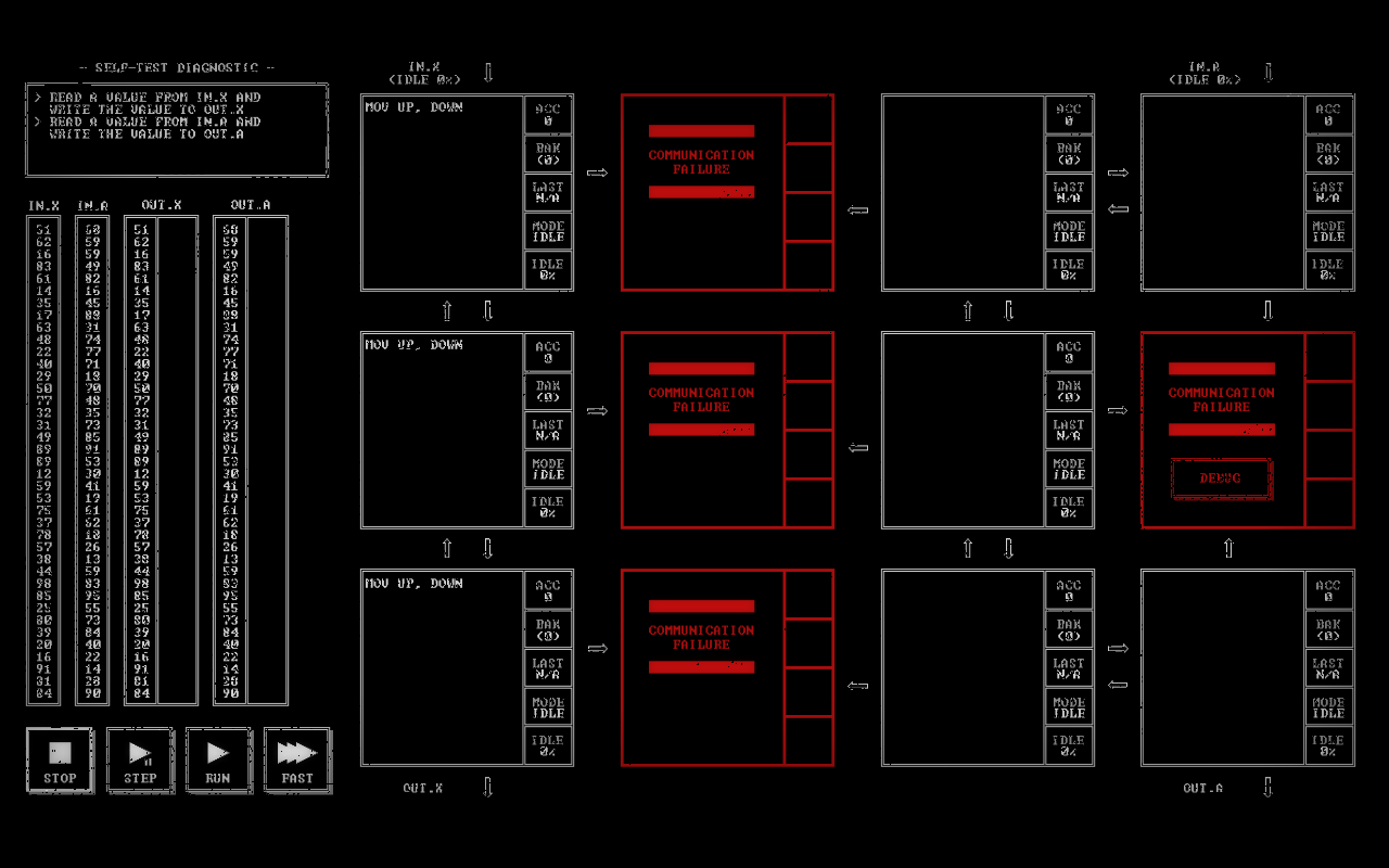 Today I spent some time looking at the TIS-100 bug, because it's a lot simpler to work with and possibly related. I discovered that it's a shader with a discard that isn't working in SIMD16 mode. The discard handling itself doesn't appear to be the problem. I can disable all assembly code that even touches the pixel mask, and it still has the issue. The render target message length appears to be 15, which is near the limit. Specifically, these WM_IZ features are in play: - Discard (kill pixels) - Depth testing - Stencil testing and stencil writes - No depth writes - No computed depth Changing any of these appears to fix the issue: - Eliminating discards at the NIR level (removing the WM_IZ bits and WM_STATE bits for killpix) - Disabling stencil testing (brw->stencil_enabled = false, disabling the WM_IZ bits for stencil) - Disabling depth testing I'm pretty sure we're staring right at the problem, but I'm not seeing it yet.