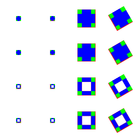 Hmm, it took me drawing some pictures and working out the different cases for edges and corners, but the "crazy idea" is actually exact. (It's not obvious because modulation with alpha and bilinear filtering can't generally be swapped .. it works here because at the edges where we are modulating with alpha the color is constant) As far as I can see, other than creating a temporary alpha surface the size of the source (which seems prohibitive) the main win of the idea is making it simpler to implement the correct behavior with a shader ... instead of having to implement the bilinear filtering from scratch in the shader, you just have to sample the texture normally than multiply it by, say: clamp(0.5 + (s * width), 0, 1) * clamp(0.5 + ((1-s) * width), 0, 1) * clamp(0.5 + (t * height), 0, 1) * clamp(0.5 + ((1-t) * height), 0, 1) But back to more immediately to this patch - how would you prefer to see the test for "source has alpha" be done? I chose to use the pixman macros because AFAIK they are as public as the pixman format constants that we use in this file and the test was simple and compact that way. (Yes, that should be alpha=0, I'll do a new rev of the patch that fixes up both at once.)