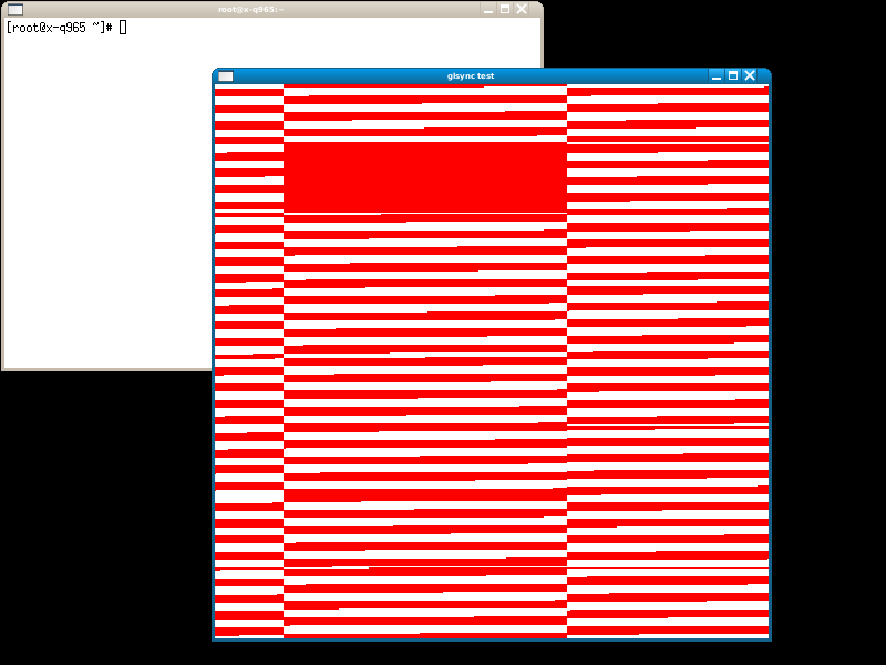 You need to pass an option to glsync, otherwise it will show you what tearing looks like. Have you tried that? glsync -h should give you help, or you can just read the comments in glsync.c.