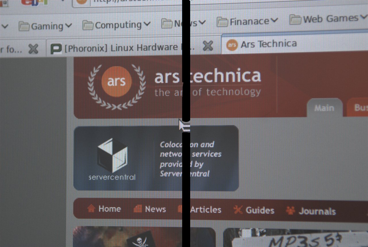 I'm currently also experiencing corruptions type 2 and 3 in an irregular basis across two screens using the proprietary fglrx driver (8.54.3) with a Radeon HD2400 PRO PCI-E. It is not really a problem because it appears and then it takes a few minutes and the corruption is gone completely. This is rather unusual and I didn't had such issues previously using Ubuntu 8.04 but now I did a fresh install of Kubuntu 8.10. In addition it indicates that this may not be a bug in the xrandr implementation as stated in some other bug as the fglrx 8.54.3 doesn't use xrandr. Machine data: - AMD Athlon 64 X2 4400+ Dual-Core @ 2.3 GHz - ATI Radeon HD 2400 PRO (RV610, PCI-E) - 2x 19" CRT @ 1280x1024@85Hz each Software stack: - Kubuntu Intrepid Ibex (8.10) - Kernel 2.6.27.11-generic x64_64 - X.org 7.4.2.0 - fglrx 8.54.3.2 (BigDesktop mode) - KDE 4.1.3 All drivers/software from the repos as I couldn't get the newer fglrx drivers to work with my two monitors. Xrandr implementations doesn't seem to be stable yet. In addition xrandr implementation in the drivers often use modes that are not appropriate for CRT's. Might this be a result of shared code between the proprietary driver and the free ones? I know that AMD already pushed a lot of code out to the world for free use and this code might be buggy. As these corruptions can be seen regardless of the Hardware actually used (or at least in a range of chips R5xx-R6xx) and regardless of the driver (+version) used. Can we also be sure that this involves only 64bit versions of the driver(s) used?