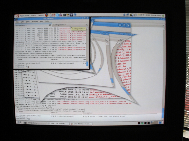 I did. I added the edgers sources do my sources.list, imported the key and apt-get updated/upgraded without incident. Upon restart, gdm came up fine, but, after login, the screen went blank and the mouse pointer clipped at 800x600. Restarting under xfce yielded a workable desktop, but without the second monitor. Gnome's gnome-display-properties found the second screen and was able to set it up, but, still, on Gnome, the screen was blank and the mouse got clipped. Deleting the xorg.conf file and restarting Gnome let me in a very weird screen with displaced bars and pointer (clicks were happening a couple hundred pixels up from the pointer). I downgraded the packages back to former configuration, deleted xorg.conf and everything worked fine. I made a small movie of the mouse movement clipping and of the displaced elements. Interestingly enough, now, with Compiz off, everything works fine - screenshots and mouse movement are absolutely perfect (if boring) I will attach the images. Let me know if you want the movie. I am reluctant to attach a 7.5 megabyte file.