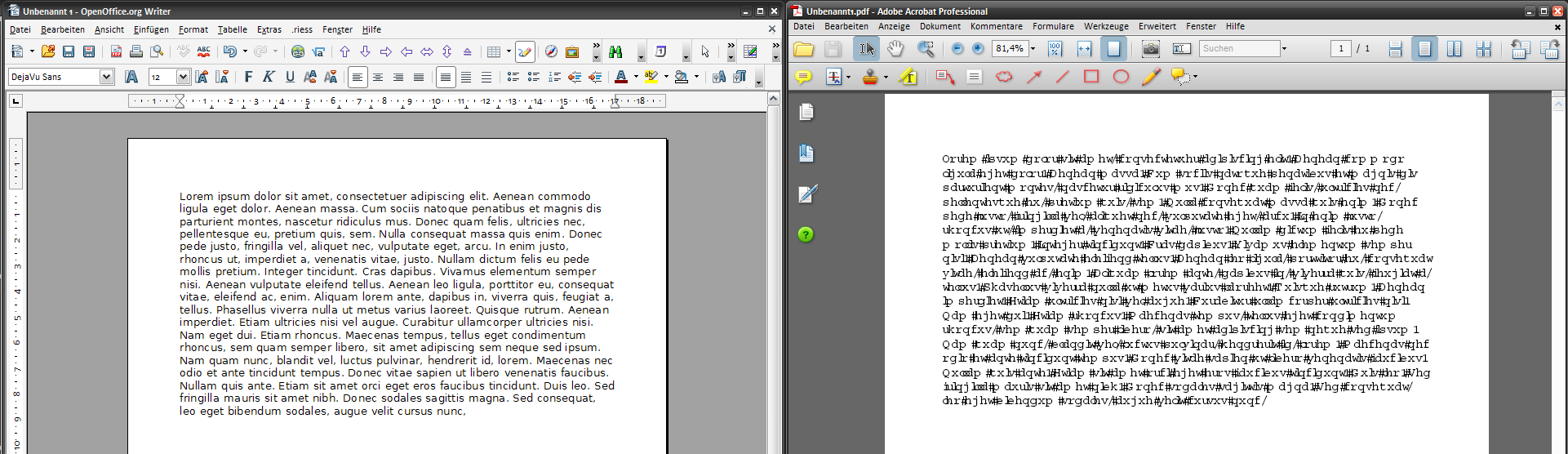 Created attachment 25893 [details] screenshot 1. use DejaVu Sans in a document 2. print that document with Acrobat 8 (didn't test any other pdf printer) -> instead of the text that's supposed to print all you get is are scrambled chars repoduced on another PC that's also running Acrobat 8 repoduced with both Dejavu 2.2.8 and 2.2.9