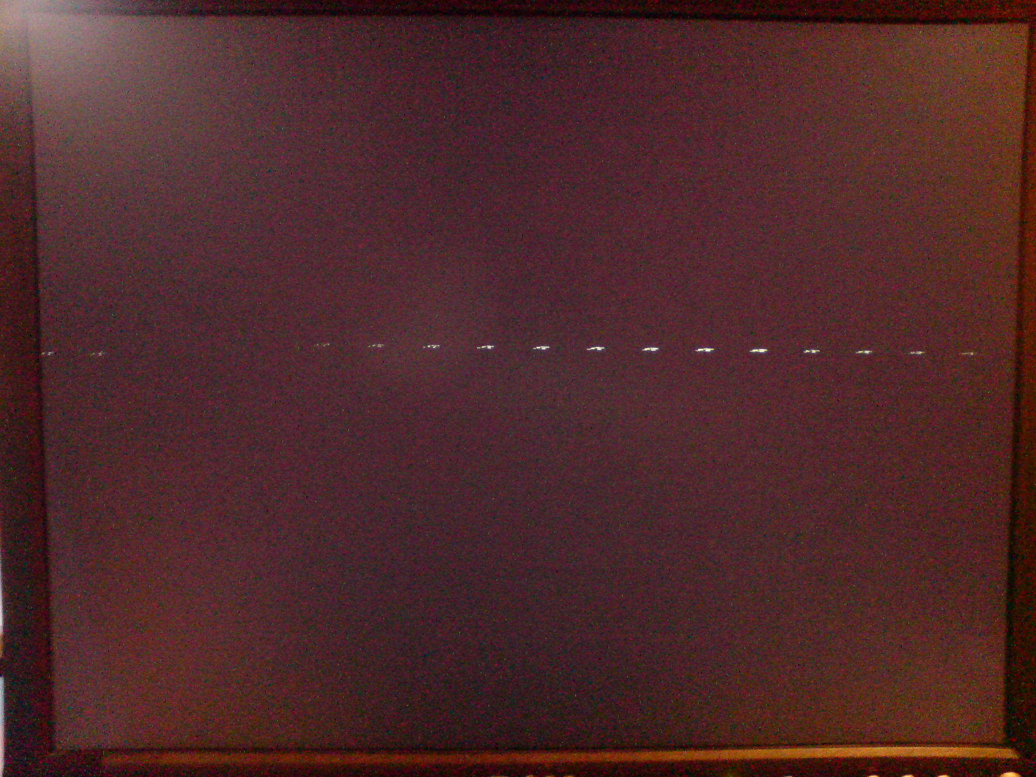 The external monitor is also garbled. I'll attach a photo. The dots in the middle of the screen seems to be a weird rendering of the mouse cursor, as it moves along with the mouse. I only answered yakui's request at the Ubuntu bug tracker, where I saw it first. Sorry for the confusion I caused for not keeping the two bug trackers in sync, I'll make amends and upload the files here as well. The gist of it is that I can't reproduce the bug under UMS (booting with i915.modeset=0), so it is probably KMS related.