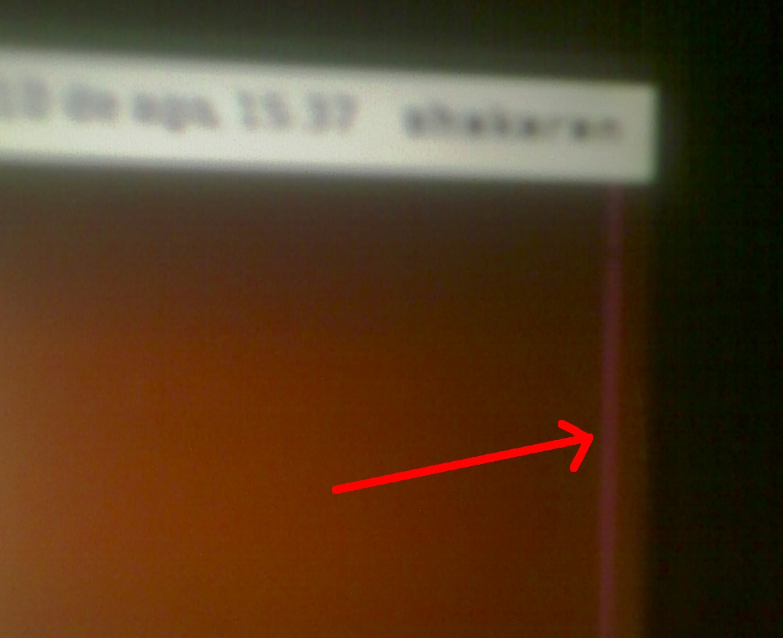 Created attachment 28723 [details] IMAGE_130.jpg Forwarding this bug from Ubuntu reporter Angel Guzman Maeso: http://bugs.launchpad.net/ubuntu/+source/xserver-xorg-video-ati/+bug/411448 [Problem] [ATI][KMS][Karmic][R300] Vertical purple line displayed on screen [Original Description] Testing kms ppa from http://www2.bryceharrington.org:8080/drupal/node/86 The screen display a vertical purple line on the right. I attached a photo (normal screenshot dont capture this). Architecture: i386 CurrentDmesg: [ 205.430240] usbcore: registered new interface driver wacom [ 205.430245] wacom: v1.51:USB Wacom Graphire and Wacom Intuos tablet driver [ 205.657556] lib80211_crypt: registered algorithm 'WEP' [ 214.860011] eth4: no IPv6 routers present [ 776.692023] pan1: no IPv6 routers present Date: Mon Aug 10 15:52:41 2009 DistroRelease: Ubuntu 9.10 MachineType: TOSHIBA 00000000000000000000 Package: xorg 1:7.4+3ubuntu5 ProcCmdLine: BOOT_IMAGE=/boot/vmlinuz-2.6.31-5-generic root=UUID=590c22cb-5c99-4270-a154-4e6df62d1b4c ro locale=es_ES vga=792 radeon.modeset=1 ProcEnviron: PATH=(custom, user) LANG=es_ES.UTF-8ProcVersionSignature: Ubuntu 2.6.31-5.24-generic RelatedPackageVersions: xserver-xorg 1:7.4+3ubuntu5 libgl1-mesa-glx 7.6.0~git20090805.ac3de85e-0ubuntu1 libdrm2 2.4.12+git20090806.d74c67fb-0ubuntu1 xserver-xorg-video-intel 2:2.8.0-0ubuntu2 xserver-xorg-video-ati 1:6.12.99+git20090805.bd03977e-0ubuntu2 SourcePackage: xorg Uname: Linux 2.6.31-5-generic i686 dmi.bios.date: 03/16/2006 dmi.bios.vendor: TOSHIBA dmi.bios.version: V1.60 dmi.board.name: EBQ10 dmi.board.vendor: TOSHIBA dmi.board.version: Null dmi.chassis.asset.tag: * dmi.chassis.type: 10 dmi.chassis.vendor: TOSHIBA dmi.chassis.version: N/A dmi.modalias: dmi:bvnTOSHIBA:bvrV1.60:bd03/16/2006:svnTOSHIBA:pn00000000000000000000:pvr0000000000000000:rvnTOSHIBA:rnEBQ10:rvrNull:cvnTOSHIBA:ct10:cvrN/A: dmi.product.name: 00000000000000000000 dmi.product.version: 0000000000000000 dmi.sys.vendor: TOSHIBA system: architecture: i686kernel: 2.6.31-5-generic [lspci] 01:00.0 VGA compatible controller [0300]: ATI Technologies Inc M24 [Radeon Mobility X600] [1002:5462] Subsystem: Toshiba America Info Systems Device [1179:ff04]