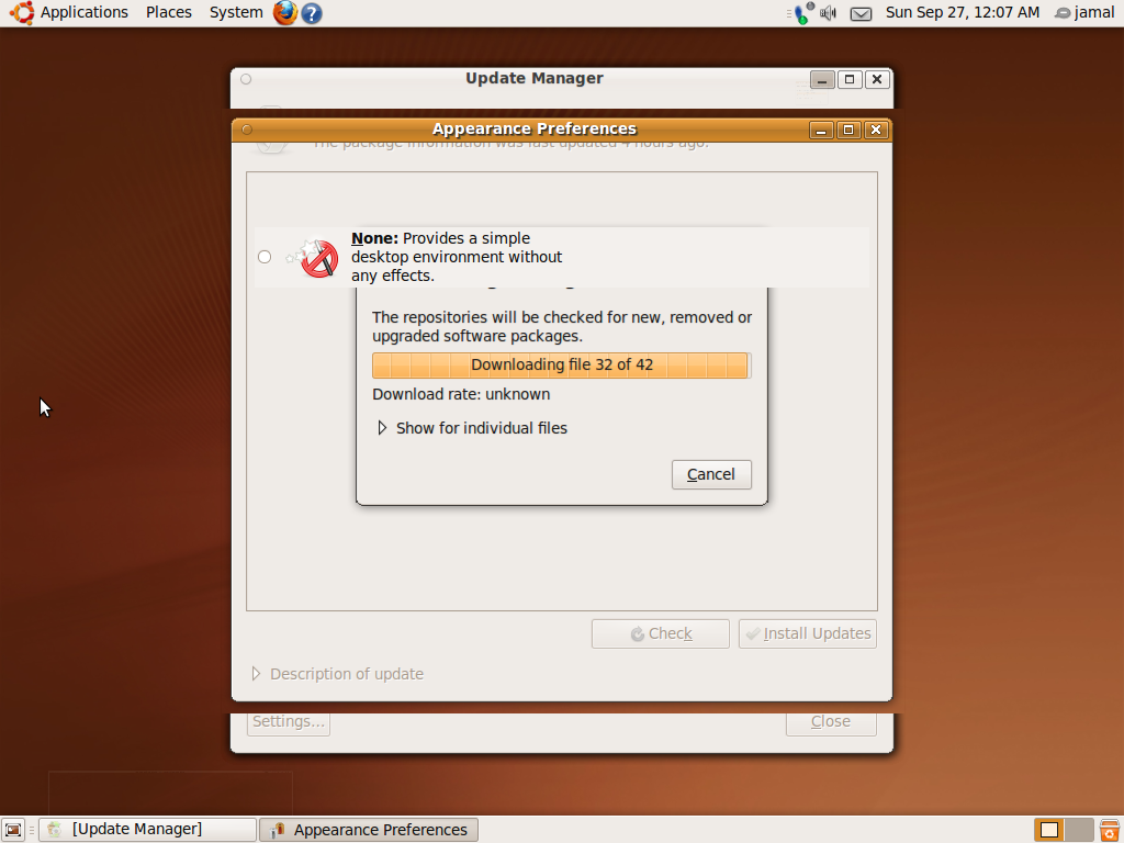 Bugzilla wouldn't allow attaching these dialogs due to its size limits, so inlining links here: http://launchpadlibrarian.net/30510557/notify.png http://launchpadlibrarian.net/30510589/brightness_display.png http://launchpadlibrarian.net/30510558/BootDmesg.txt http://launchpadlibrarian.net/30510559/CurrentDmesg.txt http://launchpadlibrarian.net/30510568/XorgLog.txt http://launchpadlibrarian.net/30510569/XorgLogOld.txt