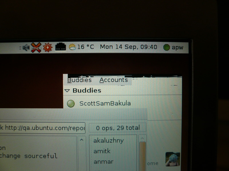 Created attachment 29532 [details] 1st Screenshot of the problem An example of the corruption. Note the mangled window menu line on pidgin. The corruption was worse initially but was cleaned up somewhat by the natural update of pidgin as people were found and populated into the list. The menu title only appeared when clicked.
