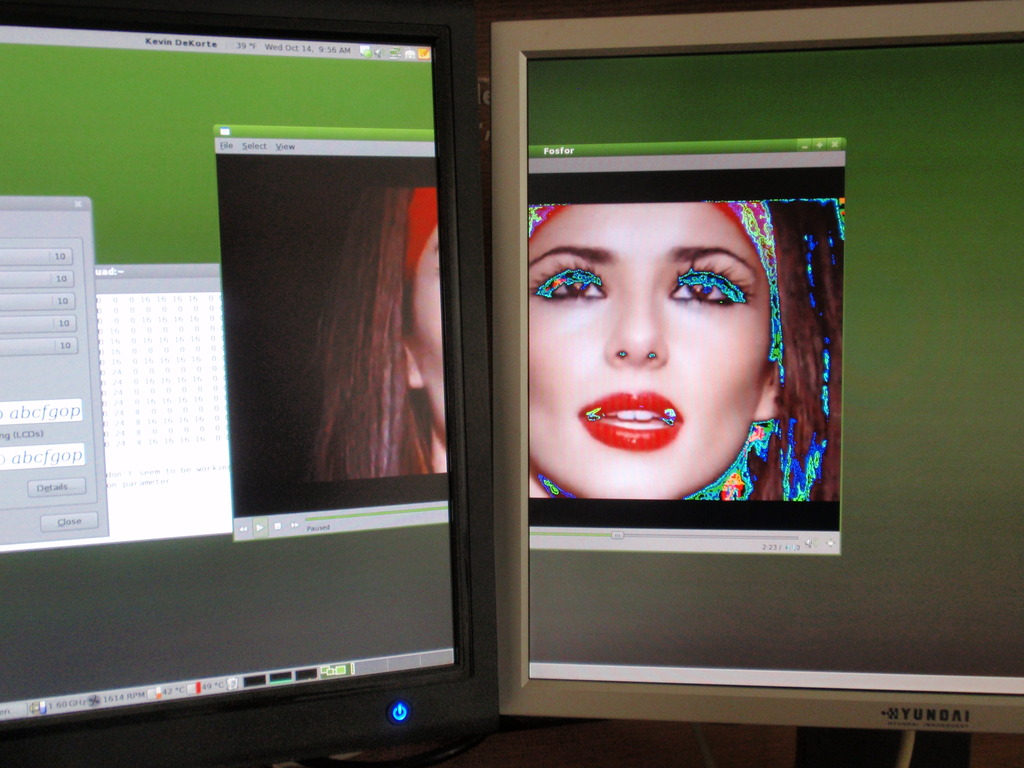 Created attachment 30406 [details] Video app showing the color issues on left display, but not right