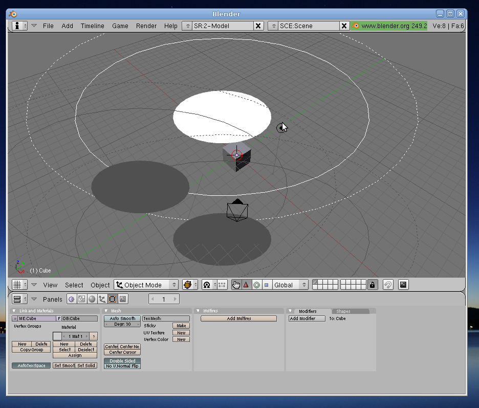 I'm also unable to select objects in Blender 2.49b by right-clicking on them in the 3D viewport. I'n running latest libdrm/mesa/xf86-video-ati git master using r600 driver (my GPU is an ATI RadeonHD 4850). I'm not sure how object selection works in Blender, but something curious happens when I attempt to select an object using right-click: an enlarged version of the area around my cursor is drawn on top of the 3D viewport. You can see this in the image I'll attach (you'll see 3 large versions of the light symbol, as I clicked on it 3 times).