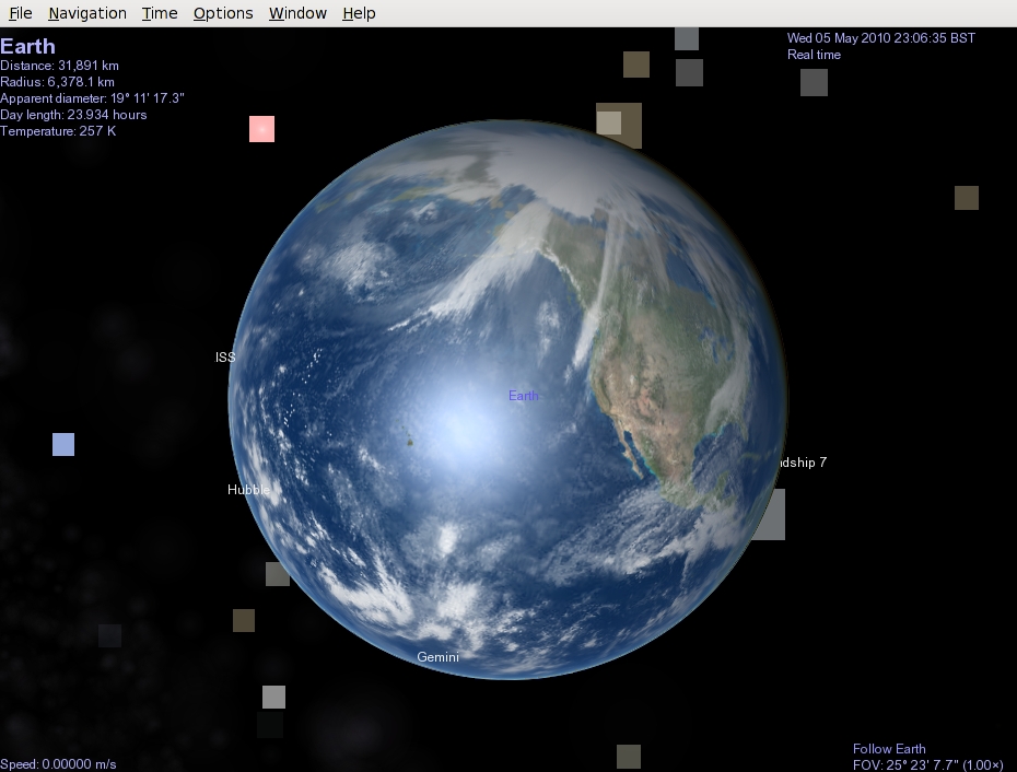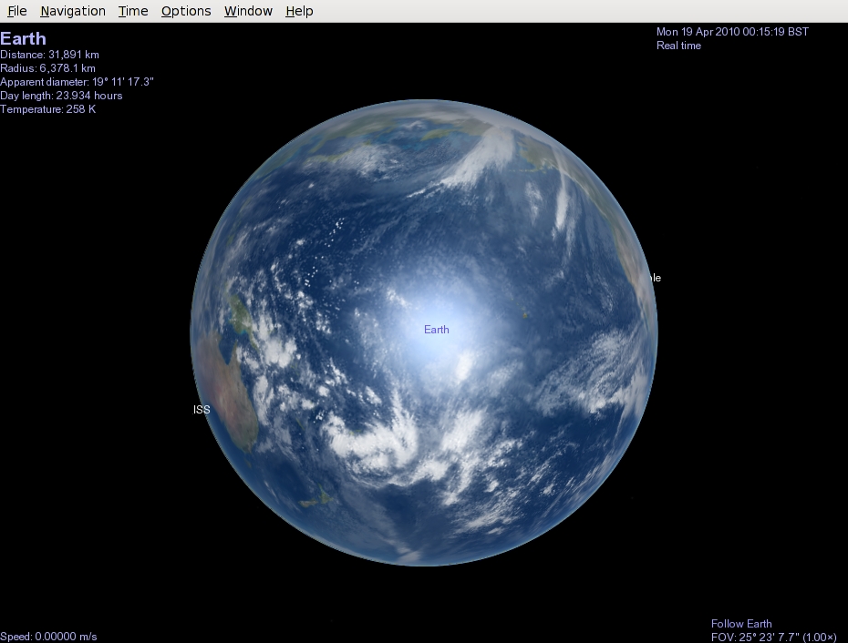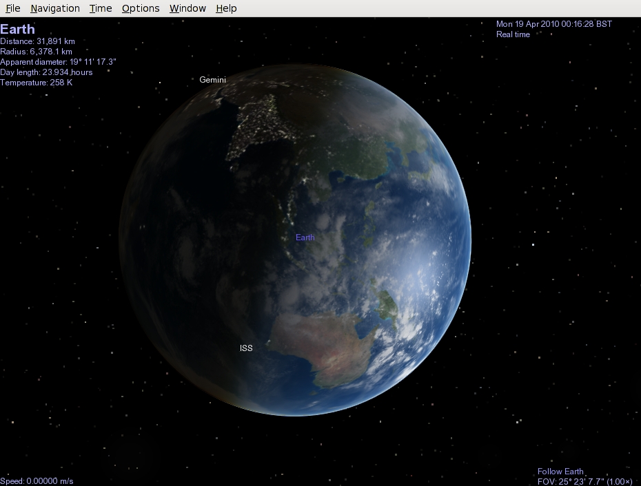 Created attachment 35150 [details] Rotate our viewpoint, and the stars come out. Rotate our viewpoint around the Earth, and the stars appear again. But they're using a lot more pixels per star than I would have otherwise expected.