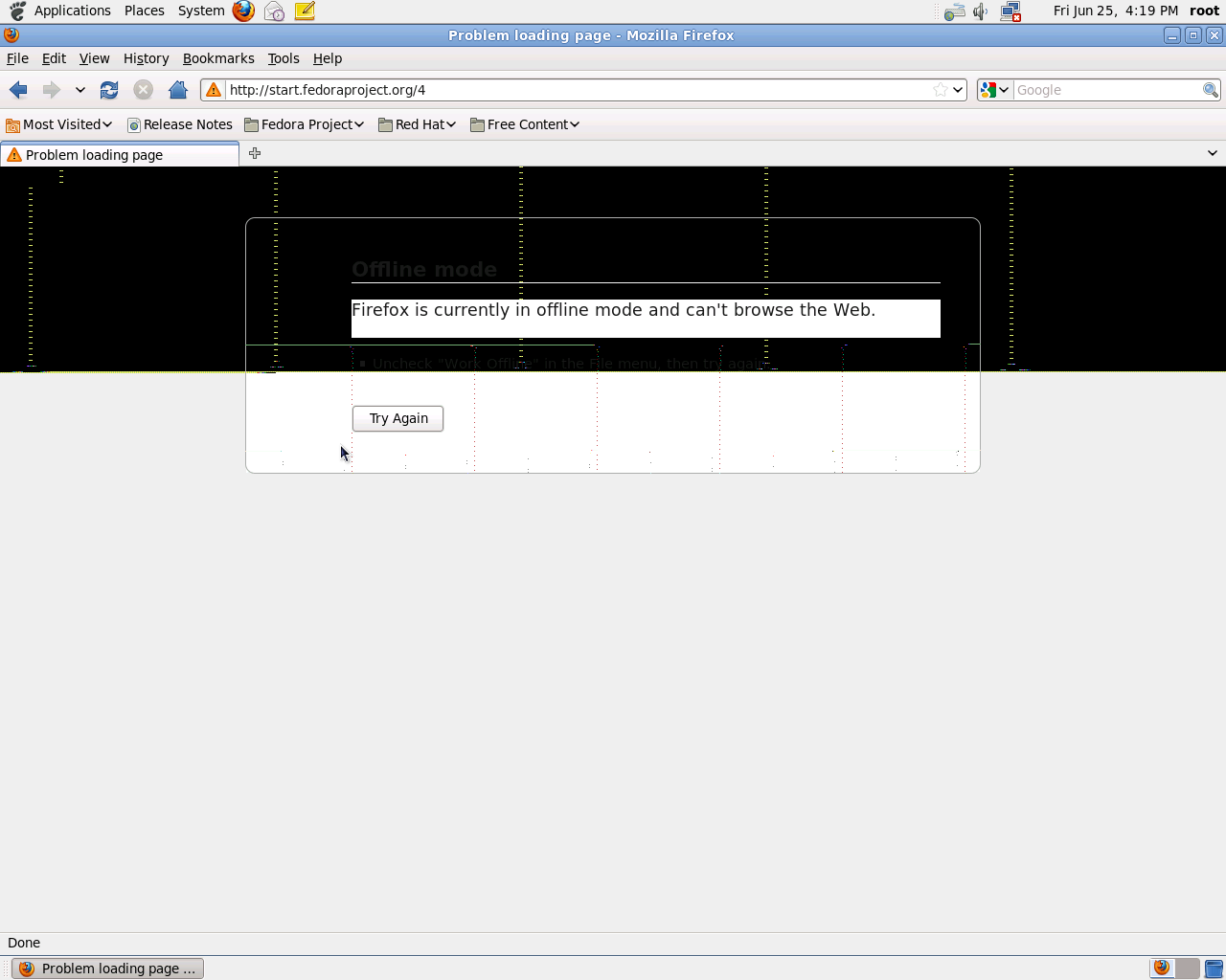 Copy from mail: >Have you narrowed down if the problem is due to your code failing to handle an offscreen memory allocation failure, or something else? Your guess is same as me after I enlarge the off-screen memory size that result in better result. Based on my debug, the bug is right here:). Today I have fixed this bug in our driver. Just as the previous code writes, the off-screen memory size is fixed 256KB(which is reserved long long ago), and in firefox, when you press a refresh button, a big mask region 768x268 is need to be rendered with PictOpOver. You know, for the PictOpOver, the first pass is to do src*mask, and the result is ARGB format. So the off-screen size is 768x268x4=823296 > 256KB, so it overflows! The black region and missing glyph character are due to this. After I know this, I adjust the off-screen region to 2MB instead of 256KB. As expected, the firefox mis-rendering bug is missing. That proves my guess and the debug result. But as you know, our Framebuffer size is not big enough in Geode, especially for OPLC computer. And 2MB is not big enough. Take an example, 1280x1024x4 is nearly 5MB. So that is possible to allocate so huge memory for off-screen operation. And Jonathan give me one-line hint, use scanline method(Jonathan usually give me the direction!). So I split the rendering into several chunk, each is 256KB, then do it. Right now, It works fine:). I am happy with this. You know that is very important for us to use a small off-screen region that can make other FB region free. So this patch is valuable. Thanks, Frank