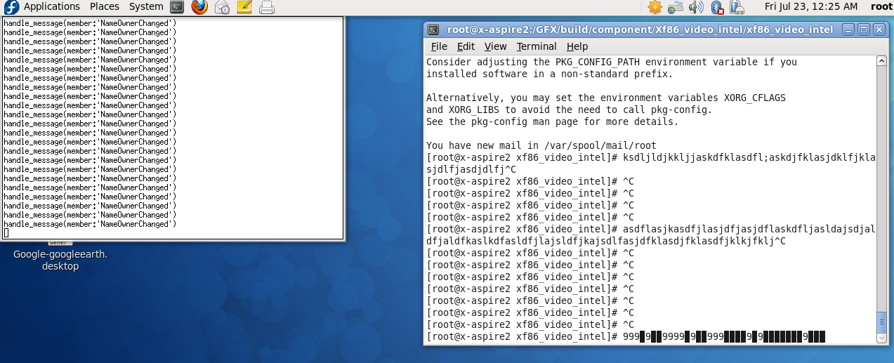 System Environment: -------------------------- Arch: x86-64 Platform: G45 Libdrm: (master)2.4.20-19-g73a42a645201a85ce2fe4fc77754df67e5097fc9 Xserver: (master)xorg-server-1.8.0-309-g643cb6e87c10ab554c03ada81930001a8ebcc909 Xf86_video_intel: (master)2.11.0-151-g6db1e5231b7a0e79611f771d4efea686f7849e04 Bug detailed description: ------------------------- The characters typed in console are wrong with the compiz. Just like bug #27421. But it is correct without compiz. The issue comes out more frequently when typing at the bottom of the console. By bisect,we found that the commit a86e4852f463c289eba019a4d231fbd6cae82f27 is good. The following commit c4775a27e3aaa2006b98f225387499b79bc609ef can't be built successfully and the commit 0bf1ddd60a3660974ad54e410533eeb481949364 fixed its built issue so it is the first bad commit which can compiled and tested. Reproduce steps: ---------------- 1.start gnome 2.open a terminal 3.typ character