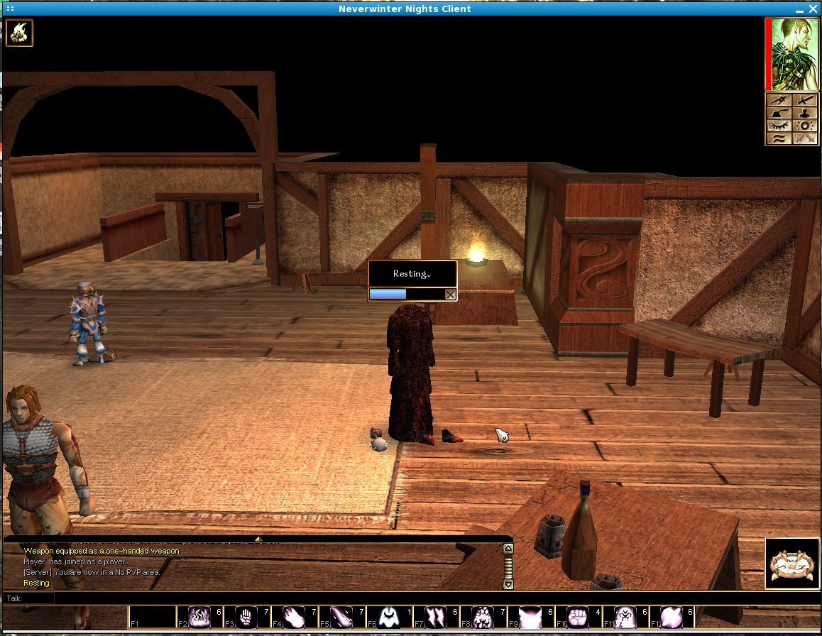 With r600, mesa from git (2.0 Mesa 7.9-devel) both with and without KMS, the texture on my players cloak flickers constantly. The cloak also does not move properly with the character. For example, if I rest, my character sits down, but the cloak remains standing. Works fine with fglrx and with r300.