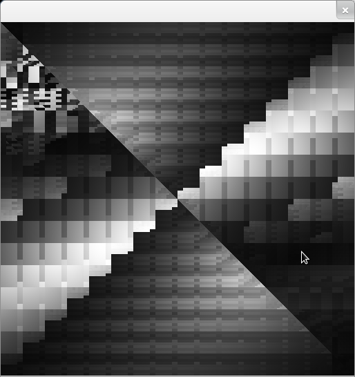 Created attachment 38612 [details] small program that triggers the bug Using a shader like this results in a strange scrambled rendering: uniform sampler2D src; uniform sampler1D pal; void main() { gl_FragColor = texture1D(pal, texture2D(src, gl_TexCoord[0].xy).x); } it looks like in addition to just being messed up it also gets the texture co-ordinates wrong (I'm rending with GL_QUADS, the two triangles that make up the quad seem to be interpolating differently across the middle)