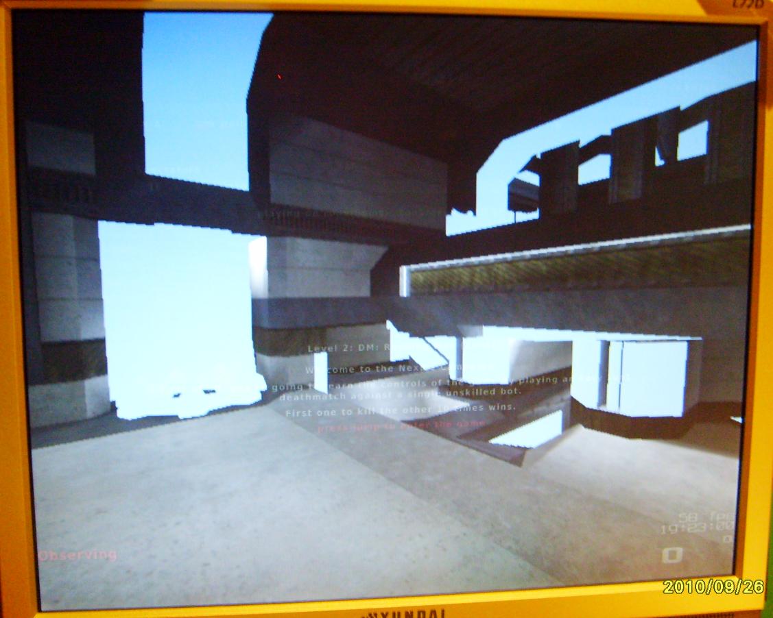 Created attachment 38972 [details] Photo of invisible textures in Nexuiz #1 Some textures look here like semi-transparent but they aren't, they change from visible to invisible... so quickly.